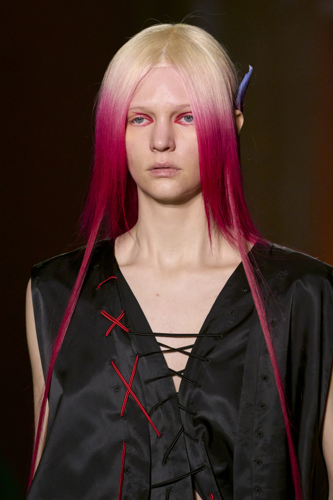 Eyeliner can enhance the colour of your eyes as well as a simple make-up in nude tones. Your summer make-up can be embellished with colour on the eyes, and rather than resorting to classic, neutral eyeliner, the make-up trends speak for themselves. During the last fashion weeks, models trod the catwalk with bold beauty looks with fun and colourful lines on the eyes. From Off White‘s latest collection, through Versace‘s Spring Summer 2022 and ANDREĀDAMO‘s Autumn Winter 2022-2023, colour never goes out of fashion. This make-up inspiration involves the use of coloured eyeliner, single- or multi-line, multi-coloured dashes or simple commas at the end of the eye.