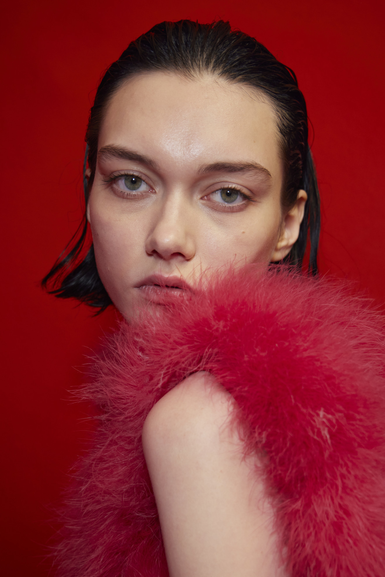 This change also appears to affect the world of beauty. Notably, we’ve seen models sporting makeup that is much lighter than what we’ve become accustomed to in recent years. Few excesses, just subtle hints of red lipstick, light glowy effects, and, as seen with Prada, Antonio Marras, Jil Sander, and Moschino, special attention given to the eyes, with eyeshadows, sharp eyeliner lines, and graphic elements. How long do you think this minimalist aesthetic will endure? Will it be able to withstand this historical moment as well?