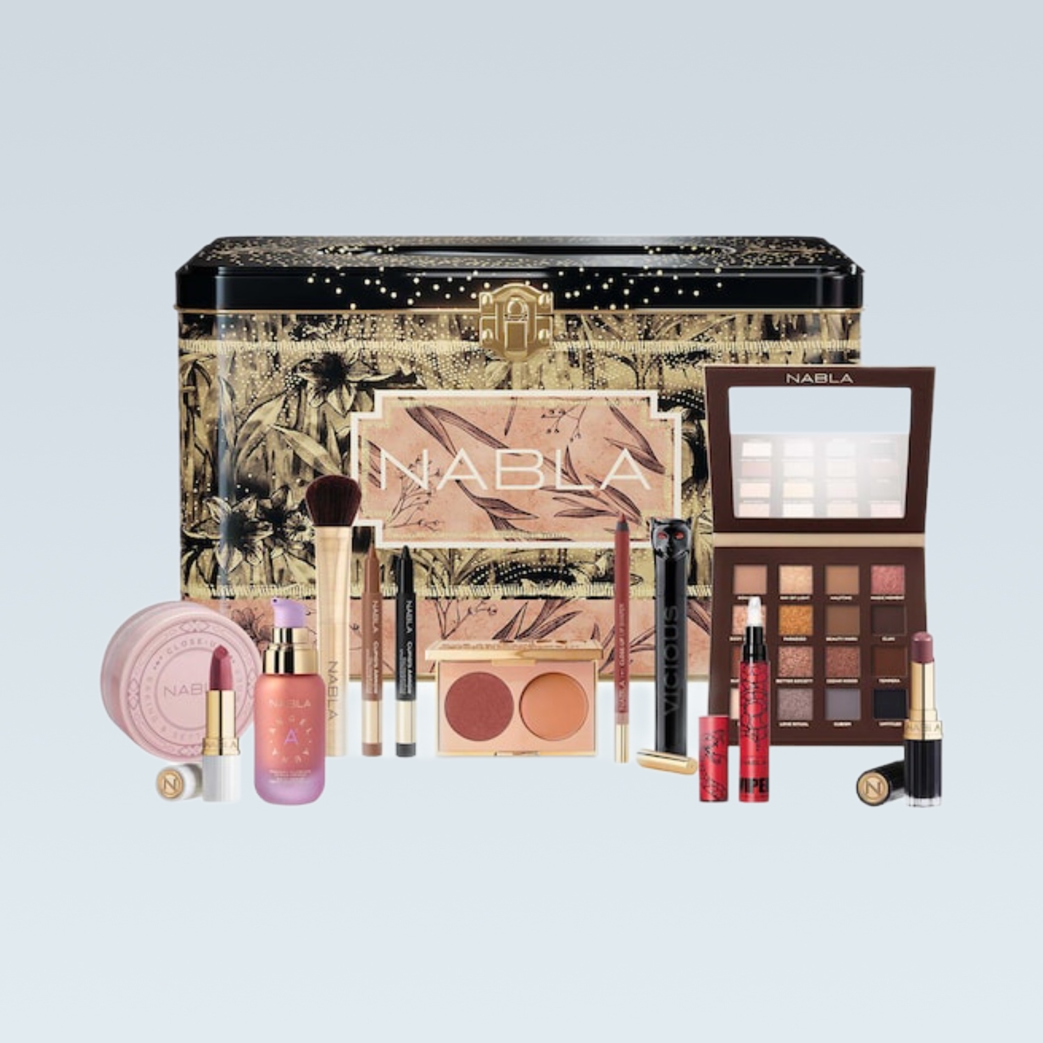 The 111Skin calendar offers a luxurious 12-day experience dedicated to skincare, revealing the secrets to achieving flawless skin. Meanwhile, NABLA presents a magical metal suitcase that holds 12 iconic surprises in full-size, all beautifully packaged in decorated boxes.