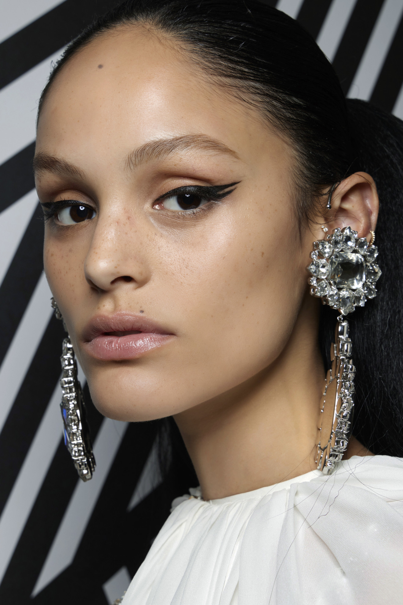 This year, however, metallic eyes will be the real stars, but it is not at all necessary to overdo it. During the last autumn-winter 2022-2023 fashion weeks, we could see how the fashion houses interpreted their vision of eye make-up. From the double eyeliner line at Giambattista Valli, to the edgy metallic look during the Tommy Hilfiger fashion show, passing through the dark retro effect make-up of Blumarine to the very light highlights of Dior.