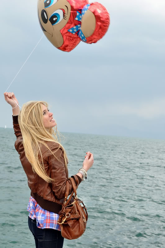 Here I am on my blog again, free and definitely more relaxed 😀 I’m so glad you enjoyed the answers I gave, I’m thinking about making another similar post with the possibility to ask different questions, It looks like the best way to make you understand me more 🙂 After the mad study that gave its results I decided to spend the weekend in Cremona to spend some time with my friends and family. Yesterday I went to the lake Garda with Richie, Vero and Martino. The weather was uncertain but the day has been amazing: I came back to my childhood eating so much candyfloss and playing all the time with my balloon. The look of the day was extremely easy, one of the must for Sundays spent away: skinny jeans, flats, plaid shirt and leather jacket. A lot of times I prefer myself in such casual outfits in which i can “play” even more.