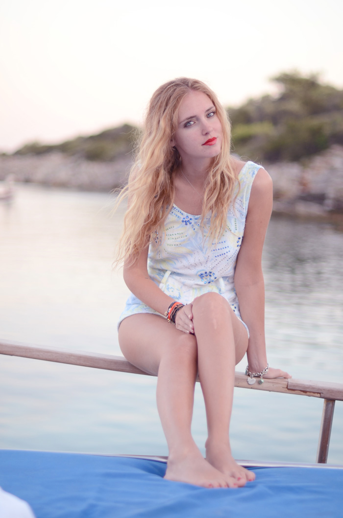 Da quando ho visto le foto di mia mamma, giovanissima, con addosso questa tutina di Blumarine in spiaggia ho sempre avuto il desiderio di indossarla a mia volta e fotografarla per il blog. L’occasione si รจ presentata durante il viaggio in Turchia, in caicco, al tramonto.Adoro le tutine vintage di mia mamma ๐