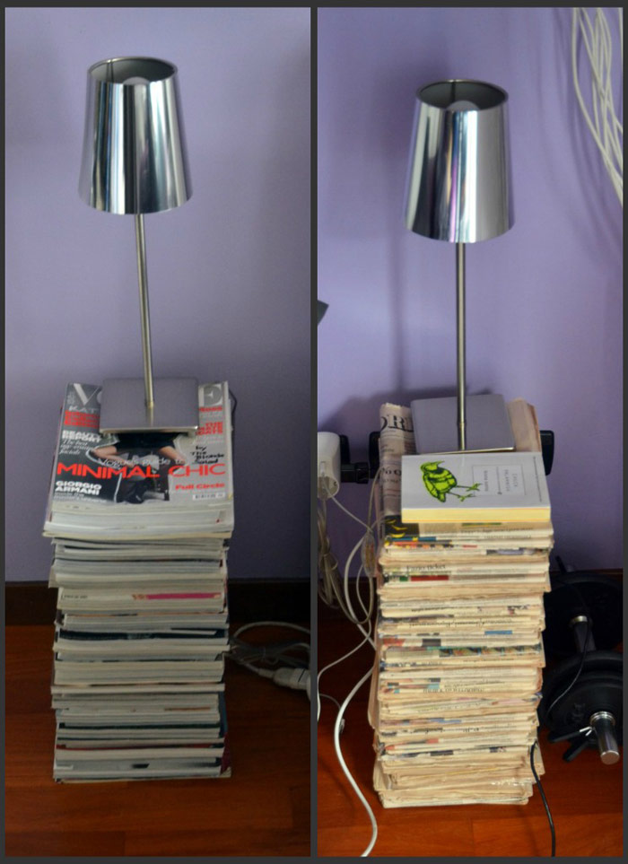 For the new house Richi and I wanted different bedside tables so we created them ourselves: mine is made of fashion magazines, while Richi’s one is made by “Il Sole 24 Ore”, such a business man ๐