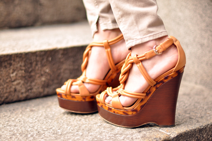 Avevo comprato queste zeppe all’outlet di Mendrisio in pieno inverno pensando di poterle indossare anche subito con calzino annesso. Alla fine non ce l’ho fatta: il mix sembrava eccessivo persino per me :S
