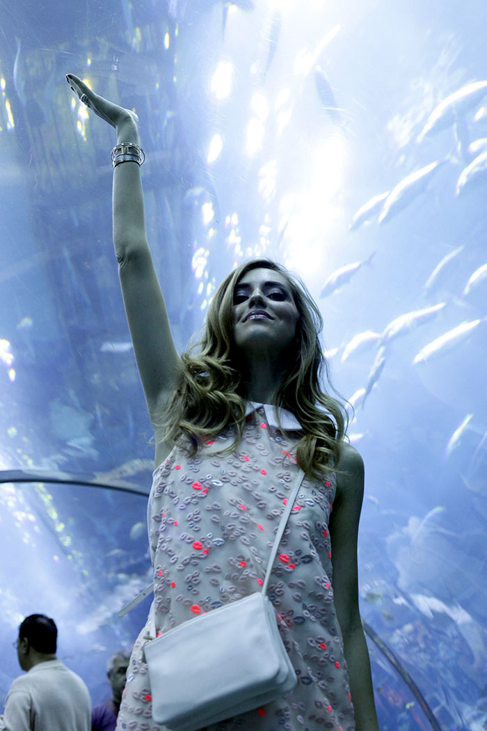 Photographic diary of my three days spent in Dubai last week for Vogue Italia gala dinner and Vogue Fashion’s Night Out: from my photoshoots for Grazia Middle East and Elle Arabia, to the walks at Dubai Mall aquarium to the event organized for me and the emotional moments at the bottom of Burj Khalifa.