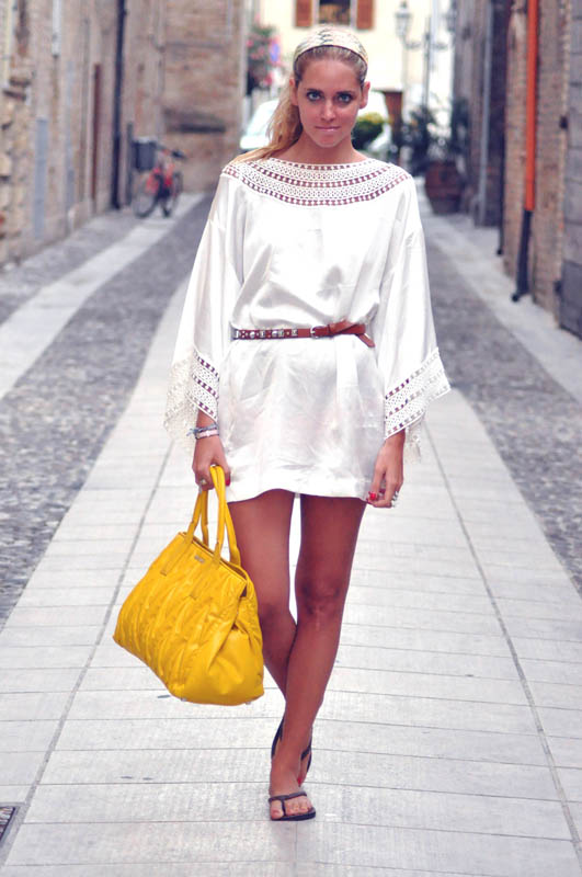 Some photos shot on Saturday, during our first day spent at our friends’ house in Porto San Giorgio, Marche. While I’m writing the post we’re also preparing our stuff to go back to Cremona and Milan a couple of days before leaving again, these days here went away so fast and I also shot other photos that I’ll publish in the next days 🙂 My look was a beach one, enriched by accessories which made it perfect for happyhour as well: i wore my Missoni headband that I had bought in May at the sample sale in Milan and one of the two Miu Miu bags bought just some hours before. I’ve been looking for a nice and big yellow bag for some time and, as soon as i entered the shop, this one was shown and at a reasonable price 😀 I love this yellow colour to use in Summer, but I also want to wear it in Autumn with some “braver” outfit, what do you think?