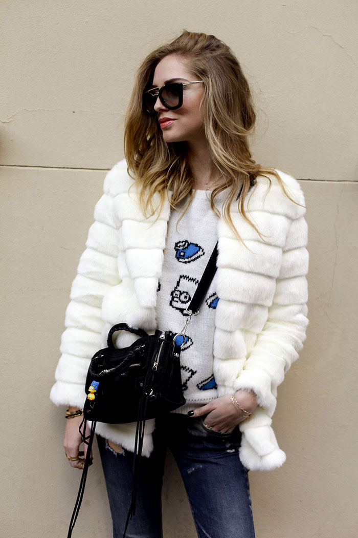 E mentre sono in viaggio verso Los Angeles ecco uno dei miei casual look di Milano, indossando New Balance, pellicciotto di Storets e jeans Carolina Wyser. E si, sono una grandissima fan dei Simpson, come probailmente avrete già notato 🙂