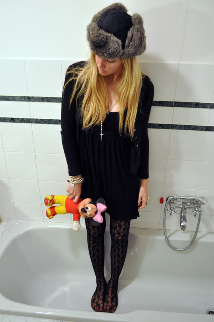 Dallo scorso autunno però non riesco a fare a meno di indossarlo anche in questi mesi più freddi: il mio armadio, complici i grandi marchi che lo hanno riproposto, è pieno di vestitini, top, leggings ed ora persino collants di pizzo. Partiamo dal presupposto che io odio indossare i collants, essendo una grande fan delle gambe nude con shorts, abiti o gonne. Naturalmente in inverno non mi metto neanche a provare a combattere il freddo uscendo senza calze, in un’ora massimo sarei di ritorno a casa con una bella febbre a 40. Quest’ anno però ho voluto provare collants diversi dal solito colore nero (comunque un classico intramontabile) e mi sono data prima a quelli con pois e in seguito a quelli con cuoricini, ed ora ho provato questi di pizzo. L’effetto di questi ultimi mi è piaciuto particolarmente, abbinati con un semplice vestito nero (come quello che in queste foto ho rubato a mia sorella) rendono l’outfit molto particolare e ricercato, con quel tocco romantico che non sta mai male a mio parere. Le foto nella vasca sono uno dei miei must, e quindi dovevo proporle anche sul blog 😀
