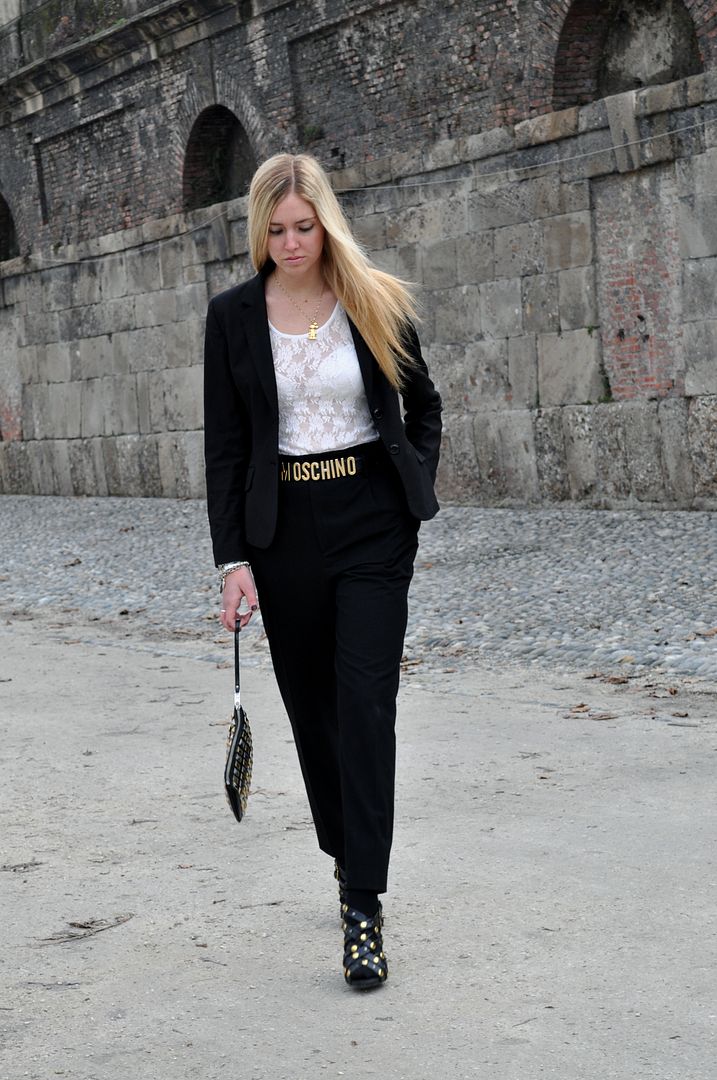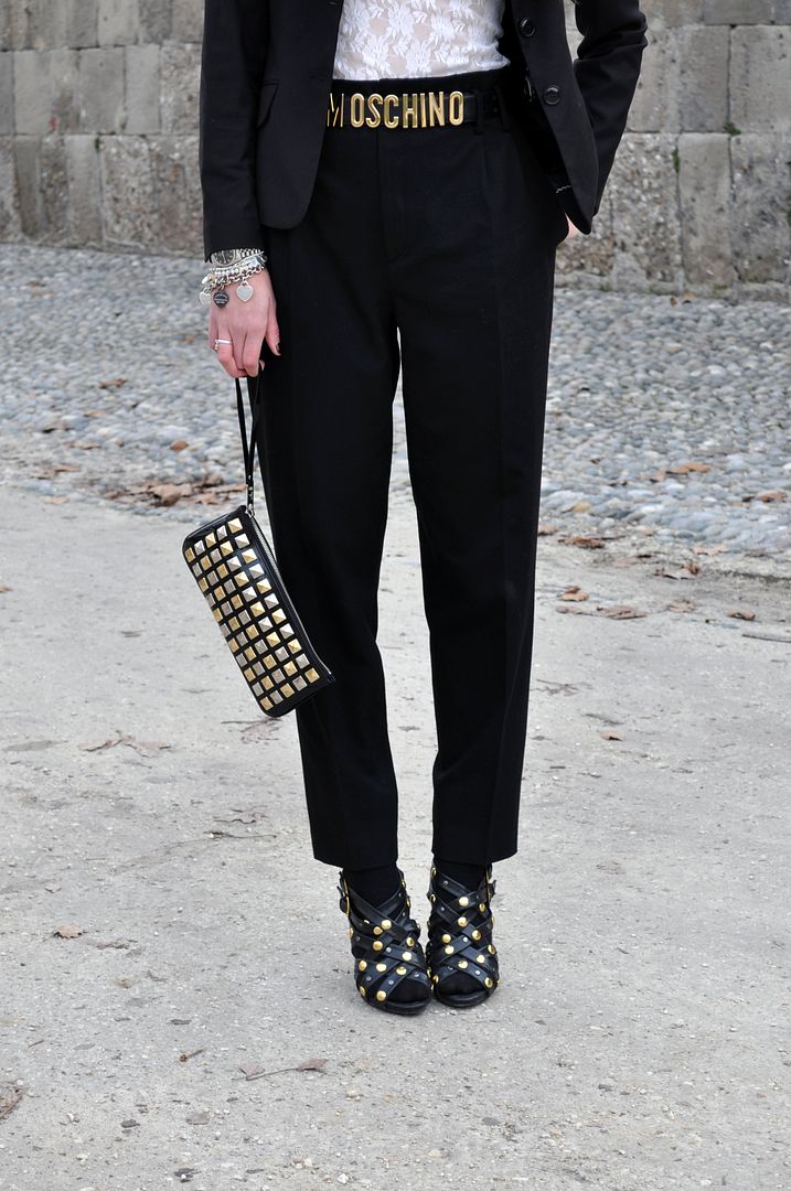 This is one of my favourite outfits. Really particular and masculine, but enriched with some gold here and there. The trousers were a perfect gift from Richie, I’ve been looking for a large and high waisted pair for a long time and I adore these ones.