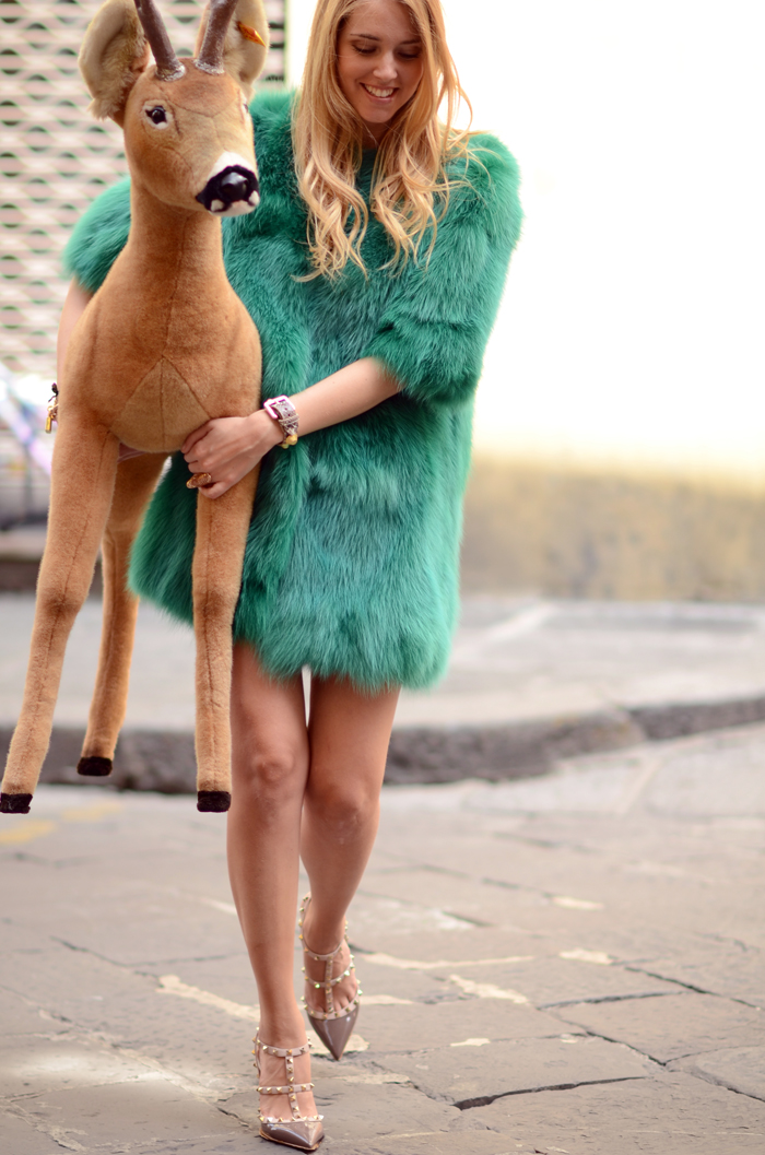 Ed ecco le foto di backstage del terzo outfit invernale che ho scelto di indossare: pellicciotto colorato, scarpe di Valentino (che poi ho deciso di comprare) e daini al mio seguito 🙂