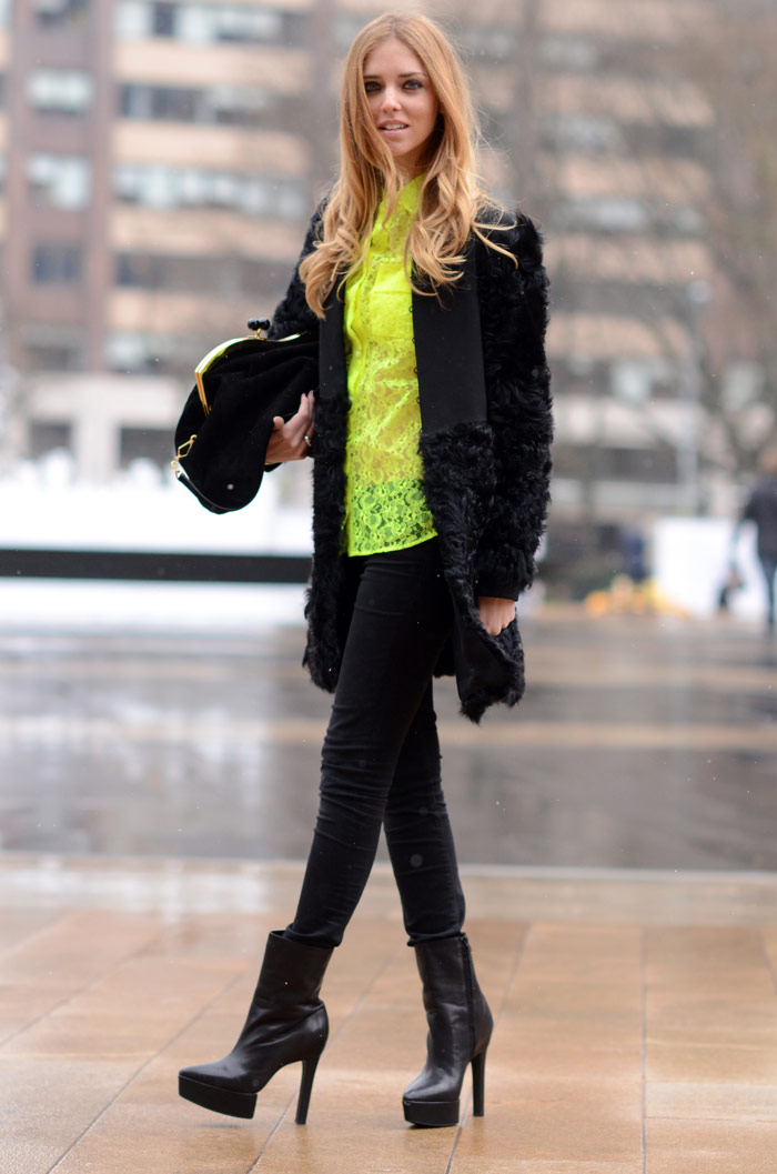 First day spent in New York: here is the look I chose for Lacoste and Tibi fashionshows (I’ll talk about them later) and for some job meetings (plus some shopping on Broadway). It’s a total black look with a neon lace shirt from MSGM cruise collection. I would have loved to wear a leopard dress for the brand fashionshow, but the snow in the morning didn’t let me, hope to wear it in the next days. Have a great Sunday you all!