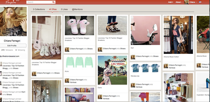 The album I’m updating the most is about one of my big passions: shoes! Each time I find photos of beautiful shoes I pin them on my profile, and I also added some of my favourite photos of my shoe line, Chiara Ferragni.
