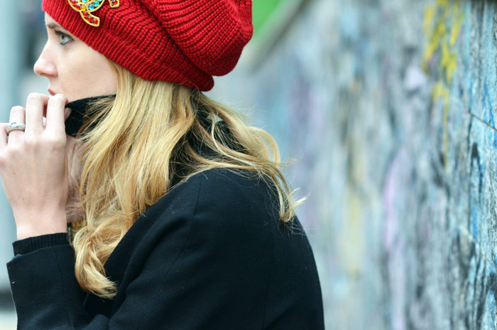 A total black outfit, only coloured by the accessories, starting with Giacomorelli leopard/studded loafers that you can find on RUNIN2, Nightingale bag by Givenchy and bonnet+ brooch combination (do you remember it in one of the first posts? So strange to go back).