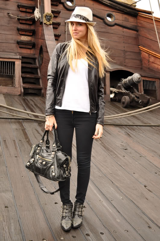 After waking up in our hotel at Porto Antico in Genova I asked Richie to bring me to visit the Neptune galleon on Sunday morning, taking advantage of the few minutes It stopped raining. Yes, these are the moments (which happen kinda often) in which i come back to childhood π Finally I’m showing you my new favourite day shoes, bought in Amsterdam with Andy, similar to the Chloe Susan boots which are sold out (and really more expensive π ). I was also wearing my usual black skinny jeans, my new shiny hoodie (perfect present for my birthday from some close friends) and my new hat.