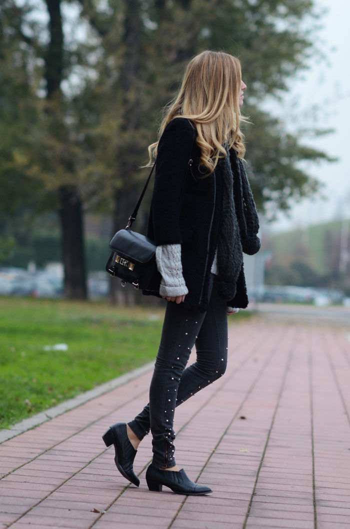 I’ve always been a fan of middle season: I love wearing a leather jacket matched to a simple tshirt, and I love walking around without wearing any tights. Cold weather has some charm as well: maxi sweaters, coats and scarves are a pleasant constant of these days. For the look I wore yesterday I chose a sweater and a maxi scarf from Dresslux, matching them to an outfit on grey and black shades.