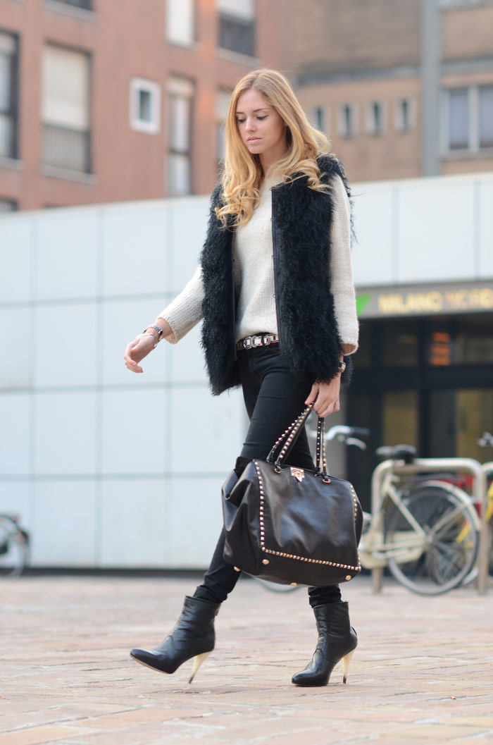 Yesterday I wore the three pieces together, creating a urban look different than usual, in which details make the difference. With the Valentino bag, Isabel Marant belt and bangle I wore the ankle boots from my first collection (fall/winter 2010/2011), black jeans and fur waistocat, both from Seven for all mankind.