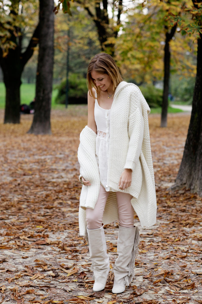 In fall/winter time It often happens to me, especially when I wake up and I find the city so cold and grey, to have the desire to dress up in white. It happened to me last year and also yesterday: I definitely like pretending I’m a yeti in Milan.
