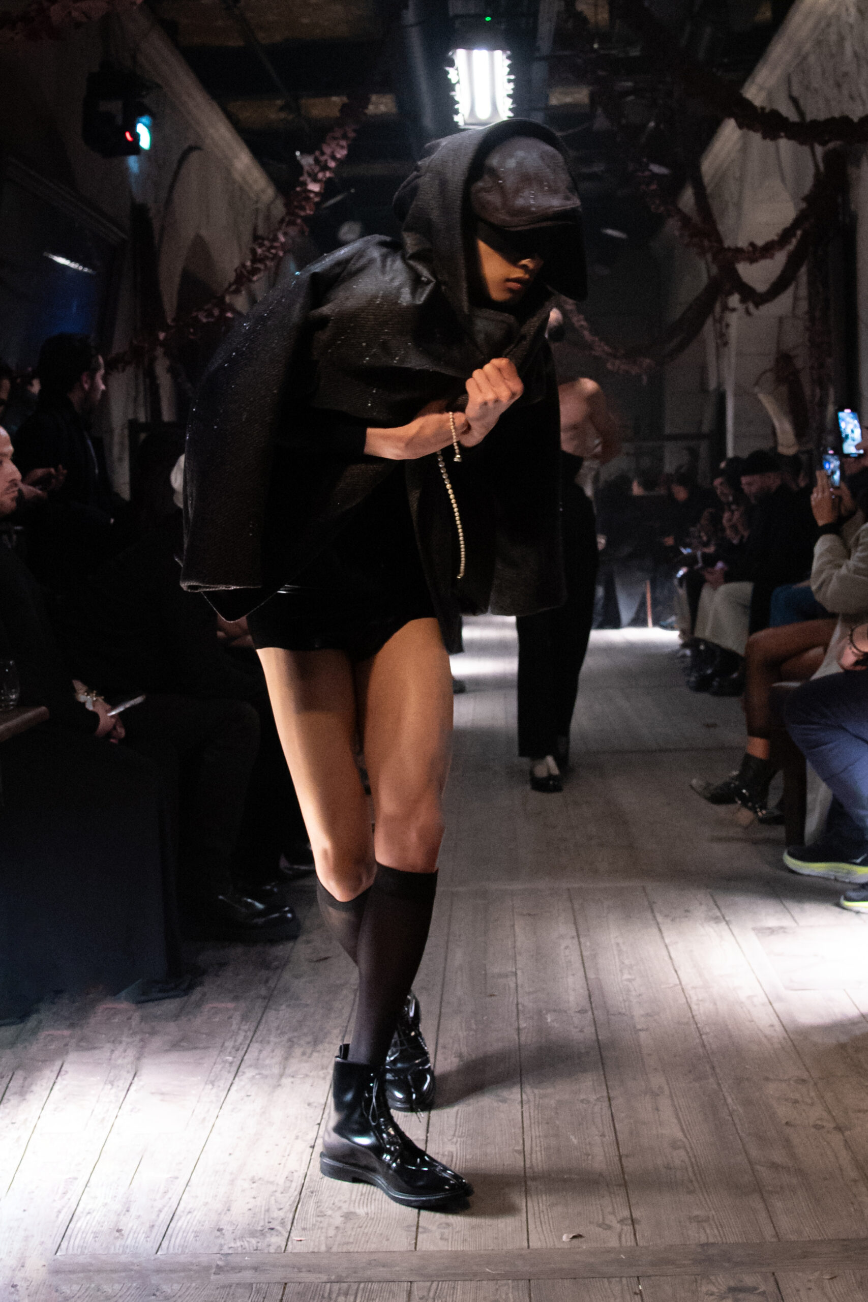 The runway, set under the evocative Pont Alexandre III and illuminated by the light of the first full moon of the year, transported us to a world beyond the conventional. Fascinated by Brassaï’s photography, John Galliano led us into an unprecedented experience. A multisensory event that engaged everyone in a journey through awareness, enriched by a black-and-white cinematic prelude told through the suggestive and rainy nighttime atmosphere of Paris.