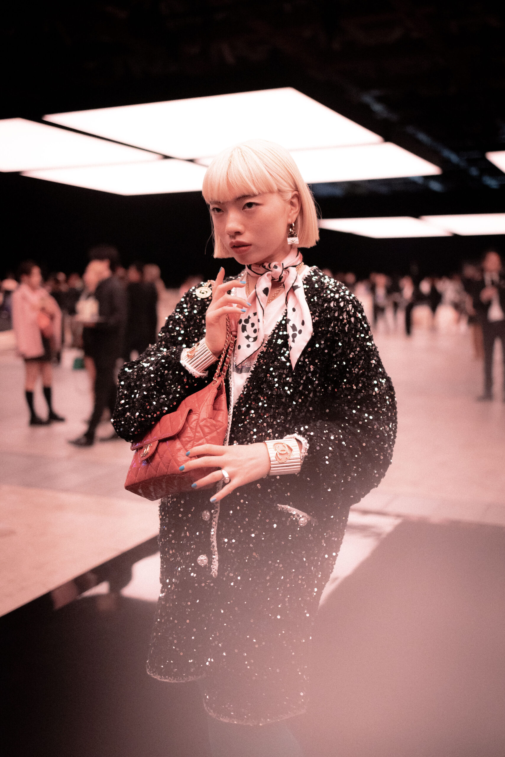 All guests were welcomed to Tokyo Big Sight with a new interpretation of “Slow Show” by choreographer Dimitri Chamblas, performed by dancers from Tokyo’s Tama University of Fine Arts, Senzoku Gakuen College of Music, Japan Women’s College of Physical Education and other universities. The evening continued with performances by the Japanese group Chai, Nix and Ichika Nito. Then, Jennie, the singer and ambassador of Chanel was a surprise guest at the show and performed on stage singing a new version of “You & Me” and a medley of “Fly me to the Moon” and “Killing me Softly.” The evening concluded with a DJ set by Japanese artist Peli and a concert by French electronic music duo Polo & Pan. Guests in attendance included Nana Komatsu, Park Seo Jun, Ai Hashimoto, Wang Yibo, Kristen Stewart, Hio Miyazawa, Kiko Arai, and Nozomi Iijima, as well as stars such as Chen Bolin, Fumi Nikaido, and Kyoko Hasegawa.