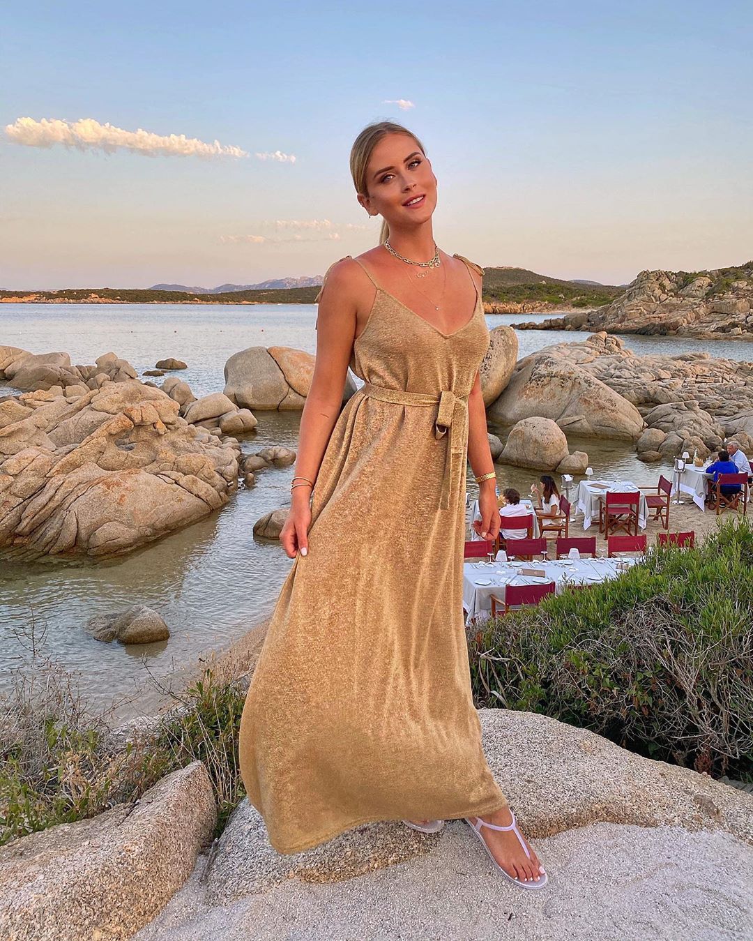 The Ferragni sisters, once again this year, have chosen to spend their holidays together by the crystalline waters of Sardinia. Fun, excursions and dream picnics were not lacking, but could they certainly not surprise us with their dream looks? In general, the sisters showed off simpler outfits for beach looks: as the trend wants, they mainly chose high-waisted boyfriend shorts to wear with bikinis and rubber slippers, or sarongs with trendy patterns such as flowers and tie-dye combined with rope sandals and espadrilles. There was no shortage of accessories: cat-eye or vintage glasses in combo with wide-brimmed Panama hats and bandanas to match the bikinis. But it is in the evening the moment when Chiara, Valentina and Francesca unleashed their iconic fashion icons style: long and fluttering dresses, coord suits and playsuits with puff sleeves, oh, and strictly zero heels! In fact, the Ferragni sisters generally opted for a bohemian style made chic by the textures and accessories, without ever exaggerating as summer nights require. Here are the looks we loved the most: