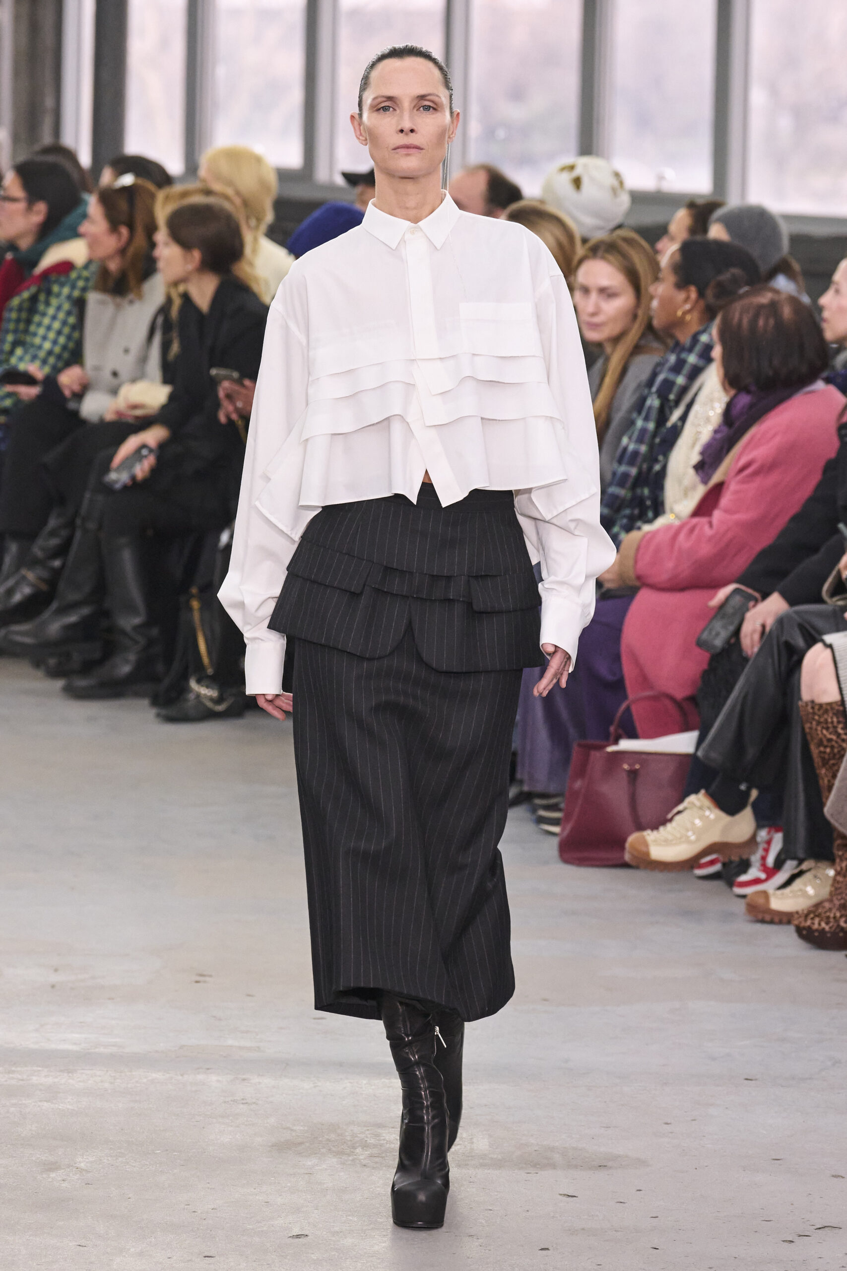 Then, skirts prove to be an excellent option for a refined work look. Midi lengths are particularly in vogue in the collections of Sacai and Bally, adding a unique touch of femininity. What are you waiting for? Pair them with an elegant blouse to achieve a balanced outfit that exudes grace and power.