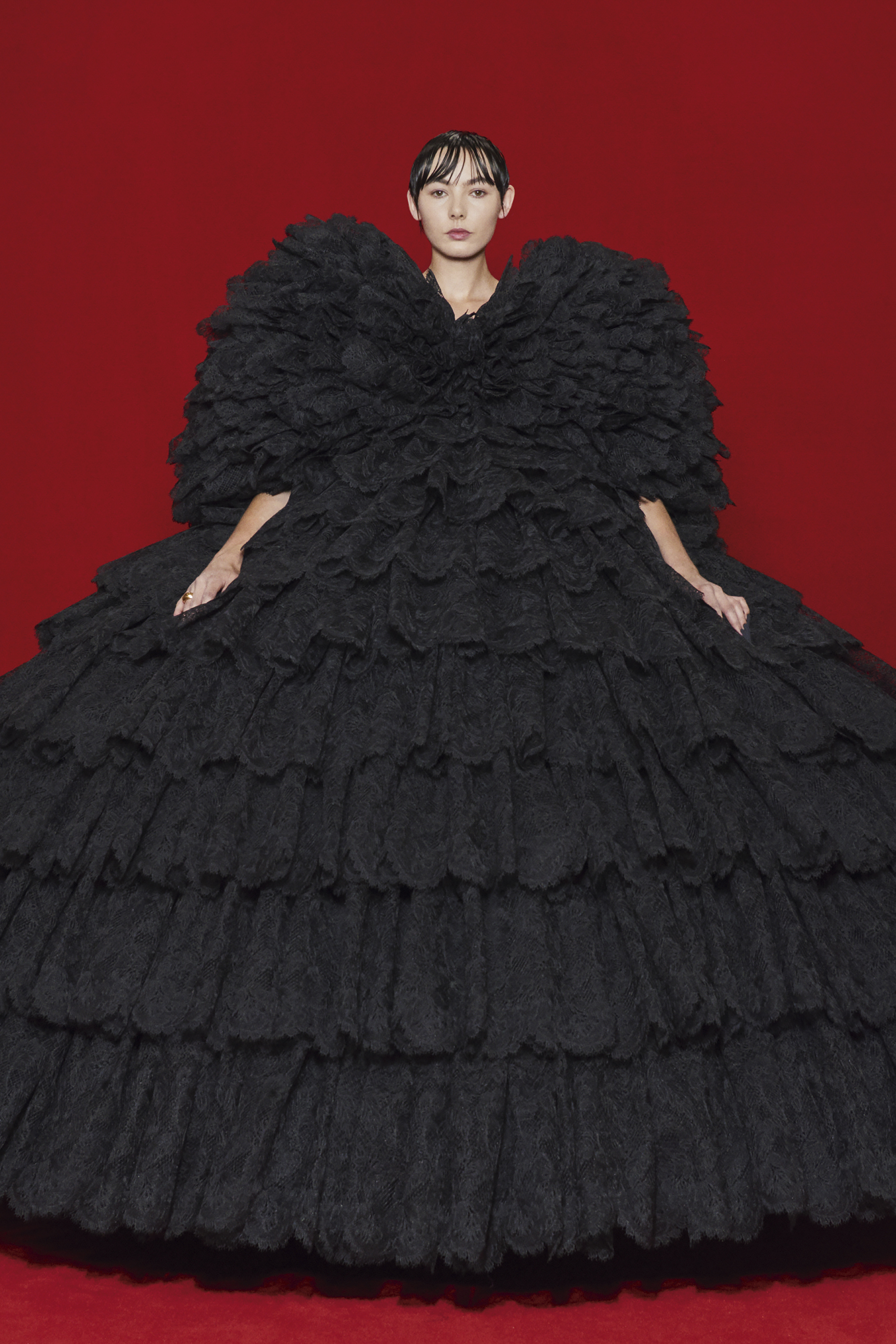 Balenciaga’s SS22 summer collection has very little, it focuses entirely on black and plays to mix streetwear with haute couture. Tight-fitting dresses and jumpsuits become a second skin, to be worn with bomber jackets and oversized coats. The clothes are extra in every detail: from the shapes to the textures up to the dimensions, Balenciaga confirms the desire to never go unnoticed and be protagonists. Alongside the dresses, there are also the now iconic 80s blazers with padded shoulder pads, oversized nylon jackets, bootcut trousers, and indispensable pointed boots.