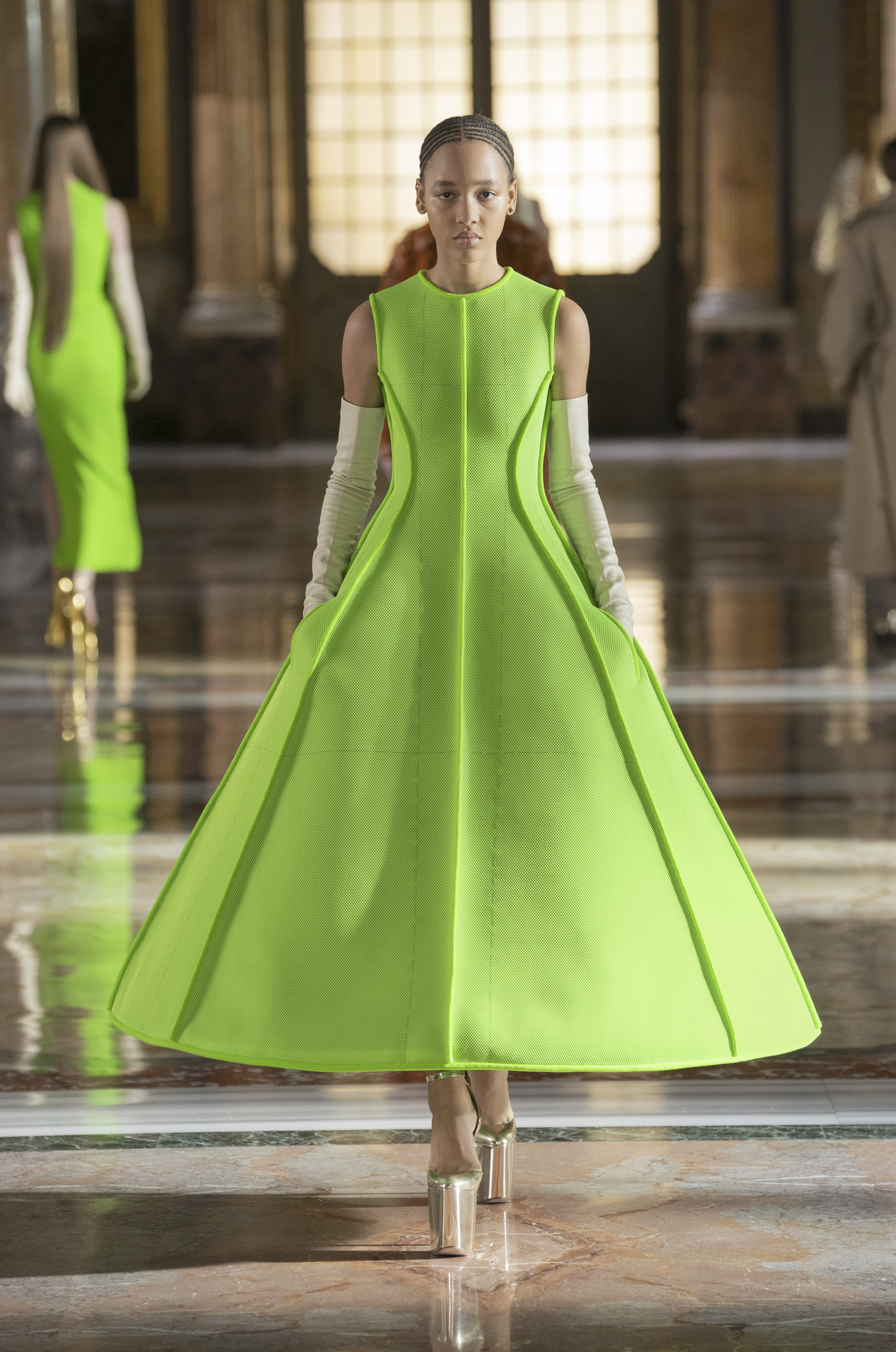If we were to give an award to the most innovative Haute Couture collection of recent years, well we would undoubtedly give this to Pierpaolo Piccioli and his SS 21 collection. , everything seems except Haute Couture. The lines of the garments are simple, the casual looks and the color palettes are soft, where is the majesty of high fashion? In the unprecedented ability of the looks to completely steal the show from the opulence of the room, to capture the attention of a wonderfully ecstatic audience. Perfectly in the style of the couturier Valentino Garavani, Piccioli has managed to redefine the concept of Haute Couture, with a wardrobe that is finally real, which is not afraid to face the true essence of our times, to invest in concrete and beautiful fashion. Everyday looks made of tailored trousers and coats broken by very high platform shoes, which recall the fashion of the 90s. Sweaters, dresses, skirts but above all outerwear tell of a democratic high fashion that adapts to this era without ever neglecting that feeling of amazement and admiration that typically arouses. «Haute couture is a ritual of thousands of gestures, one more precious than the other. It is a heritage to be celebrated, preserved and above all projected forward». And it is precisely this forward projection that is the key to the success of the collection, which after a series of everyday looks enchants everyone with evening dresses made of cascades of sequins and beads, outerwear with lurex fringes and golden over the knee boots. The color palette recalls this year’s trendy Pantones: yellow, purple, gold and greige alternate beautifully in the garments in color block compositions that we will hardly forget.