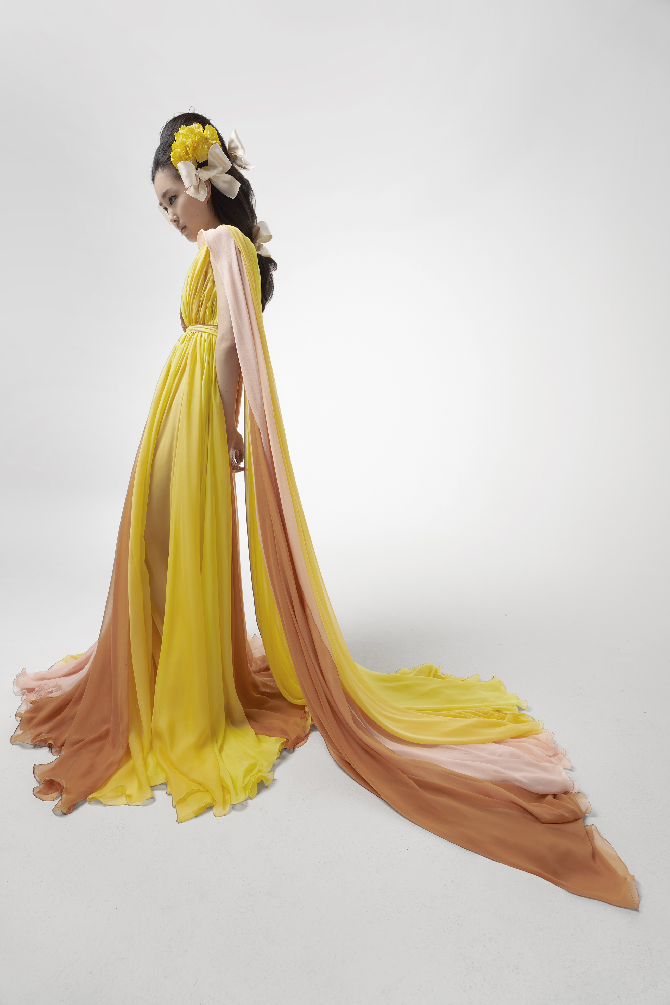 A romanticism that never ends up becoming cloying, that of Giambattista Valli who interprets the Haute Couture SS 21 collection as a hymn to femininity and pastel colors. Tulle, the iconic protagonist of the collection, is mixed with flower petals and soft colors such as white, pink and yellow, to create beautifully idealistic dresses. A reminder to the sumptuous style of the Olympians, embodied in flower headdresses and Greek-style dresses composed of wide skirts, ruffles, hand-worked ruffles and bows and feathers to embellish. A dream that makes us sentimental and capable of instilling wisdom and elegance, referring faithful to the idea that fashion, especially Haute Couture, should become the ambassador of an essential good and elegant ethics.