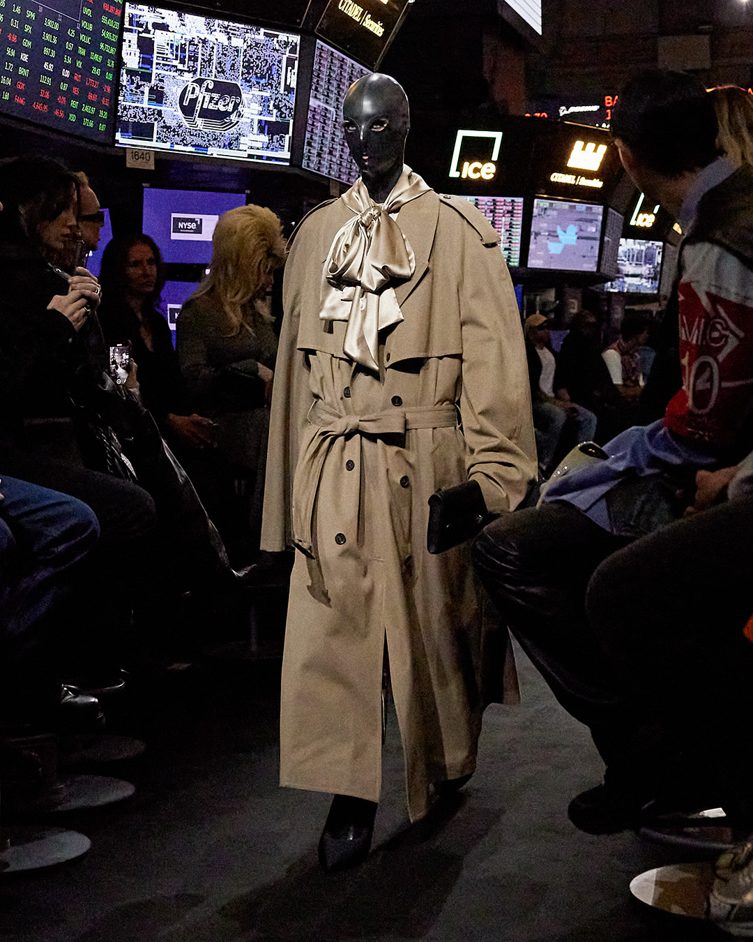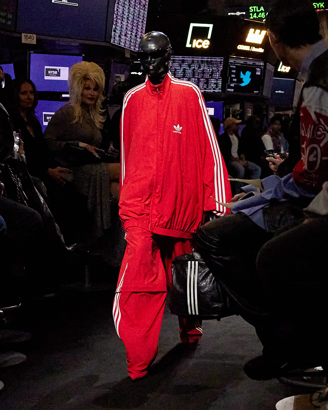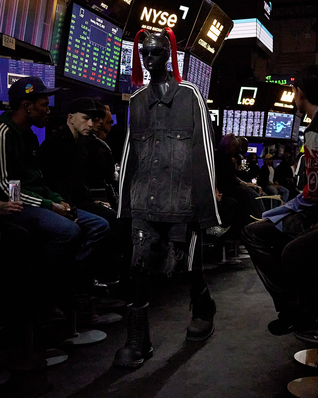Demna Gvasalia chose to show Balenciaga in the setting of the New York Stock Exchange. While “New York, New York” played in the background, an alternation of blazers and oversized jeans, then the collaboration with Adidas and the latex masks. The choice to use masks, however, has a much broader meaning for Demna, a metaphor for capitalism. Faceless individuals and personalities that finally become an expression of equality by destroying social differences.