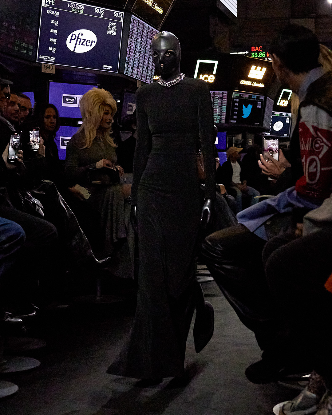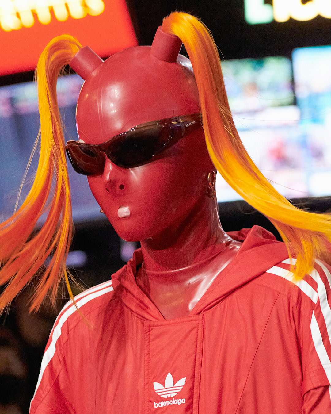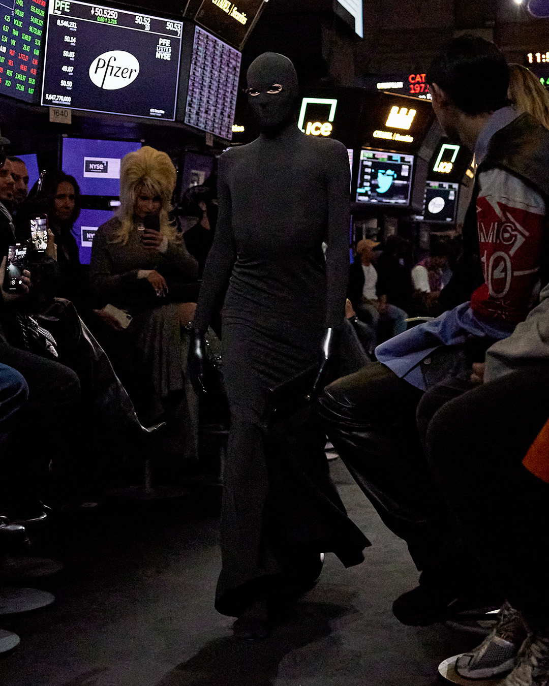 Demna Gvasalia chose to show Balenciaga in the setting of the New York Stock Exchange. While “New York, New York” played in the background, an alternation of blazers and oversized jeans, then the collaboration with Adidas and the latex masks. The choice to use masks, however, has a much broader meaning for Demna, a metaphor for capitalism. Faceless individuals and personalities that finally become an expression of equality by destroying social differences.