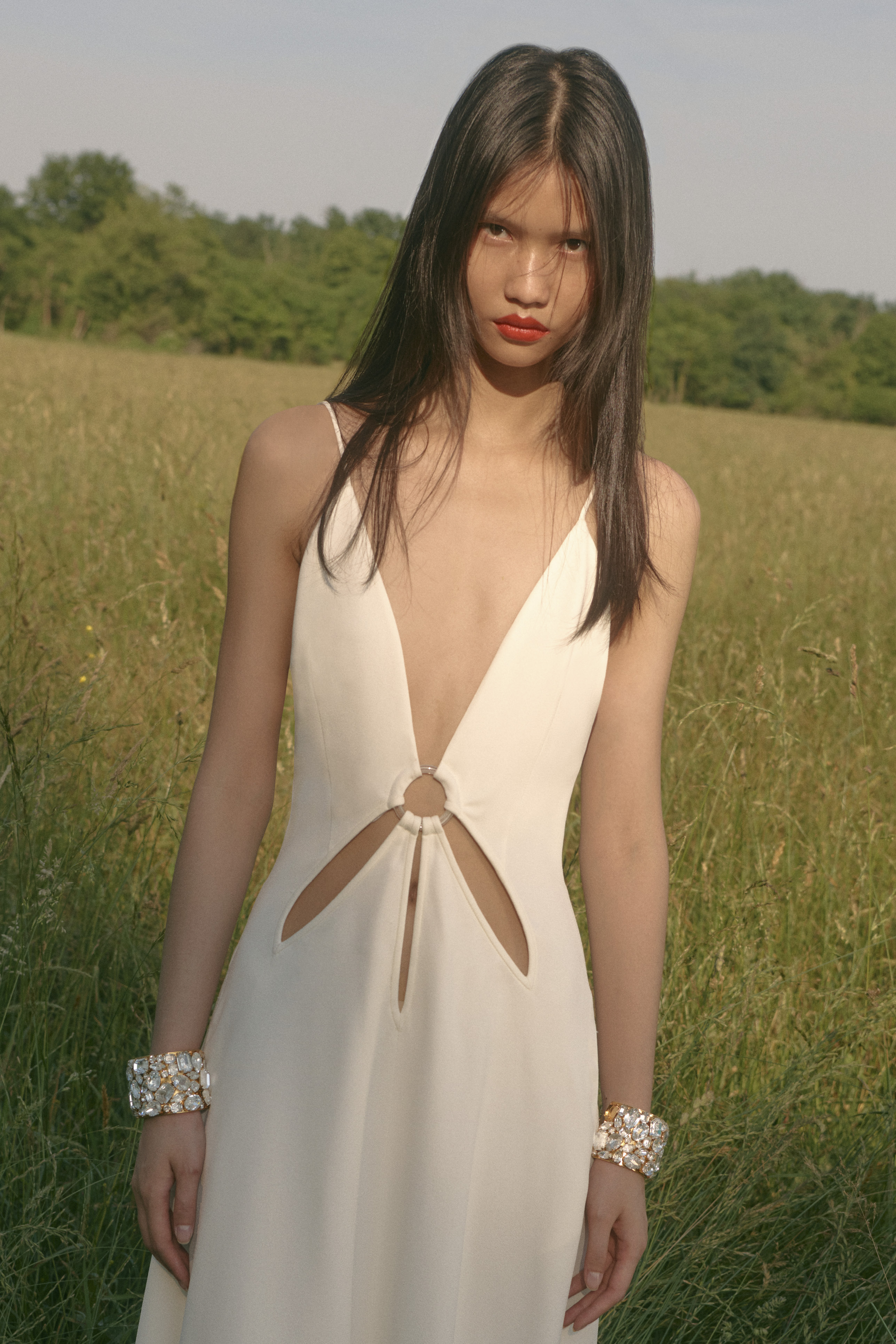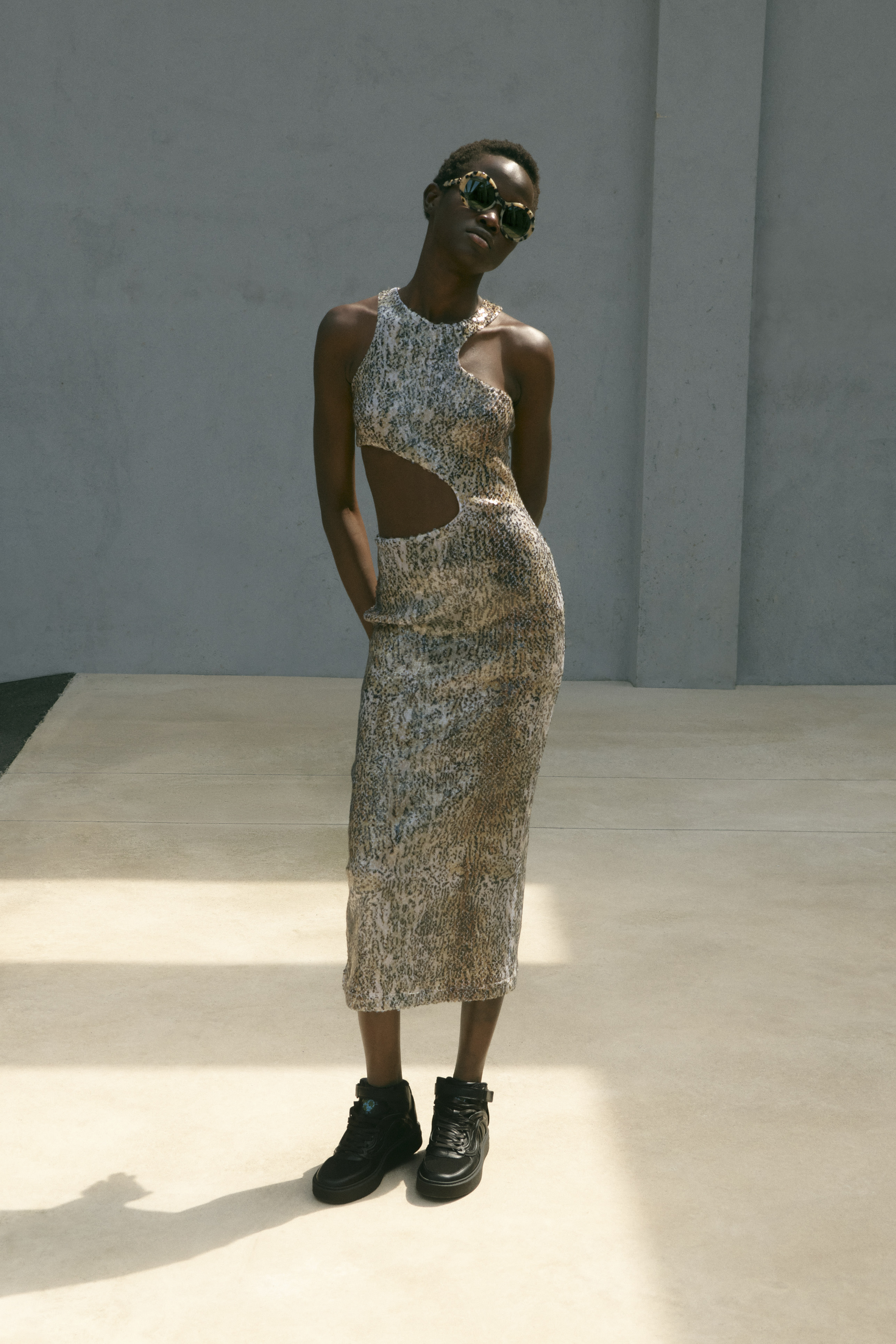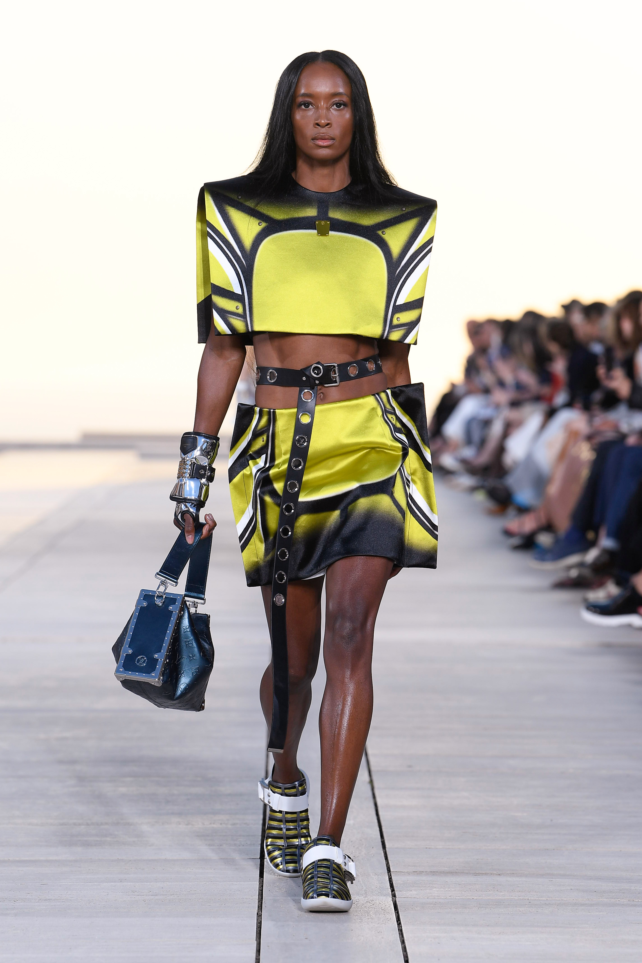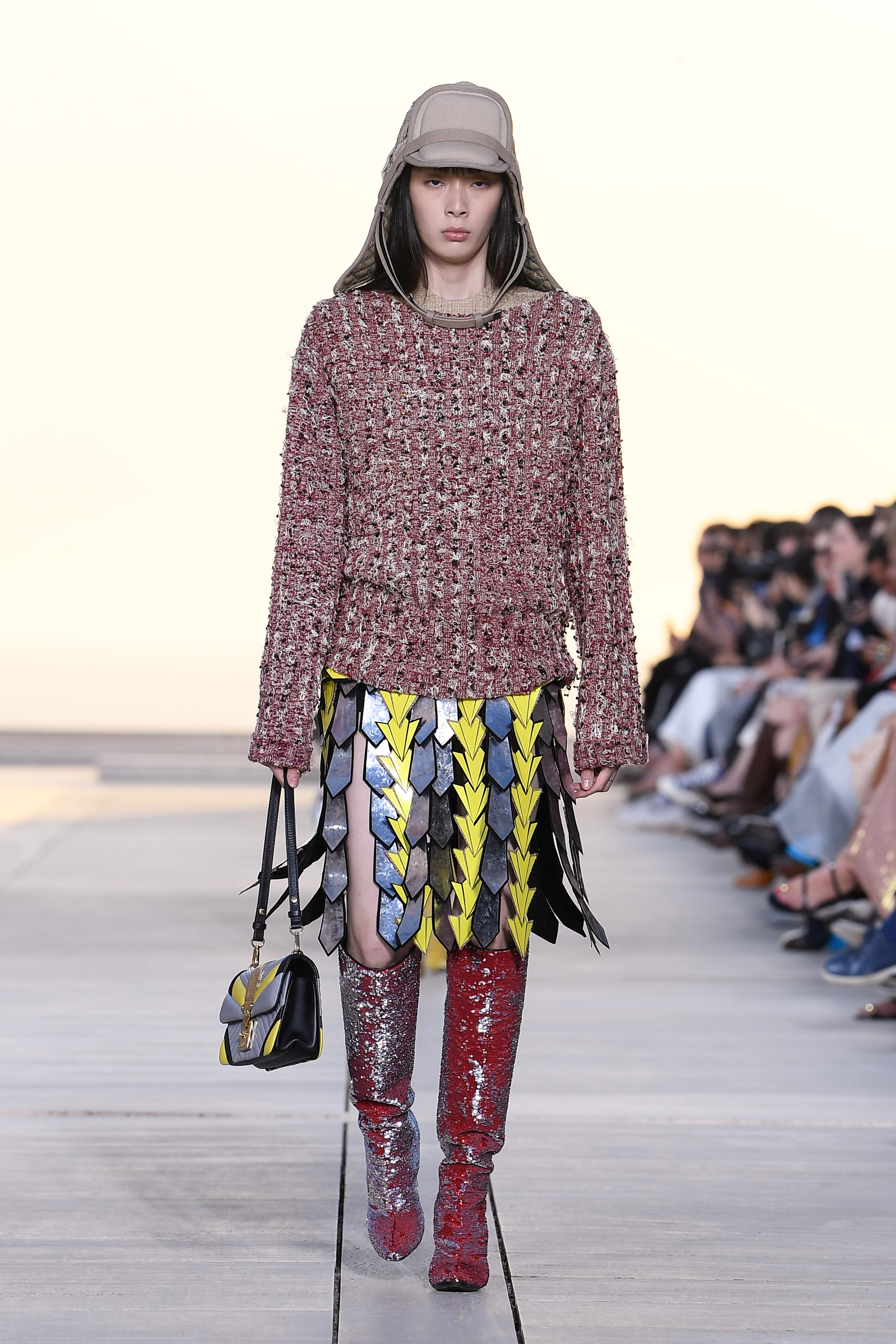 The fil rouge of Louis Vuitton’s 2023 resort collection is the sun, the California sun. In San Diego, Nicolas Ghesquière presented a selection of daring looks. From boleros, a parachute seems to open in flight, metallic textures, unusual geometries and overlays, crystal fringes. This collection is a clear representation of oxymoron, even in the choice of location. Not surprisingly, Louis Khan’s architectural Brutalism is even more emphasised by the Pacific Ocean at sunset. In fact, even the clothes/clothing present strong contrasts, both in fabrics and colours.