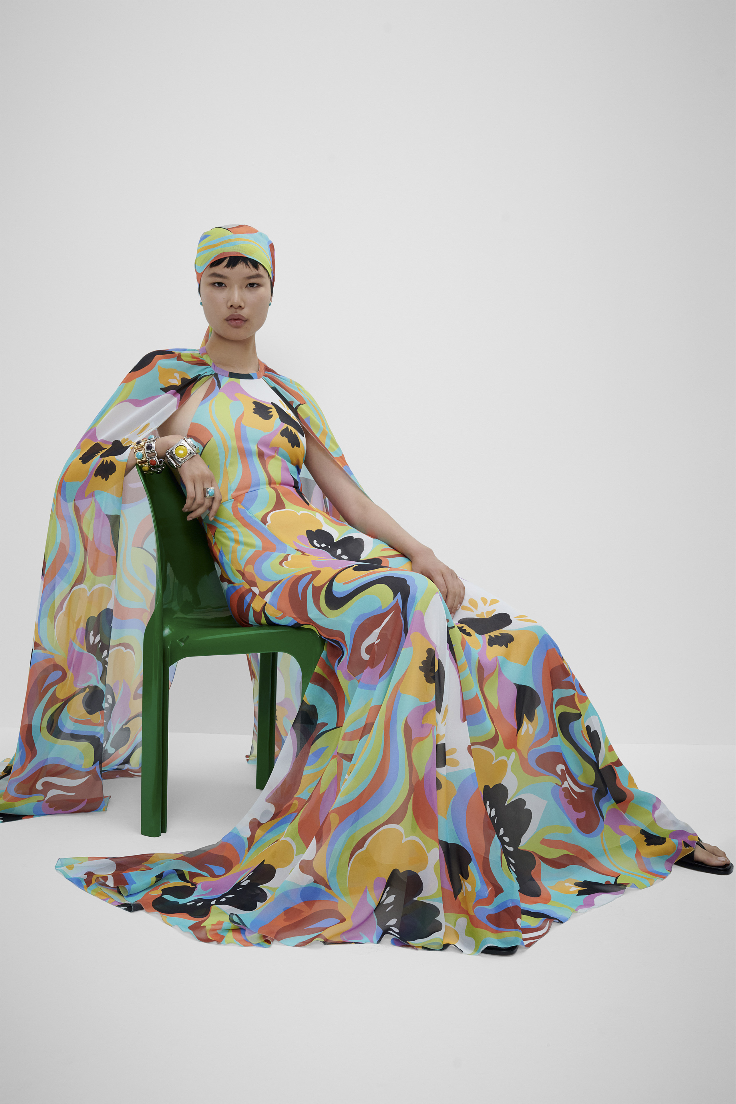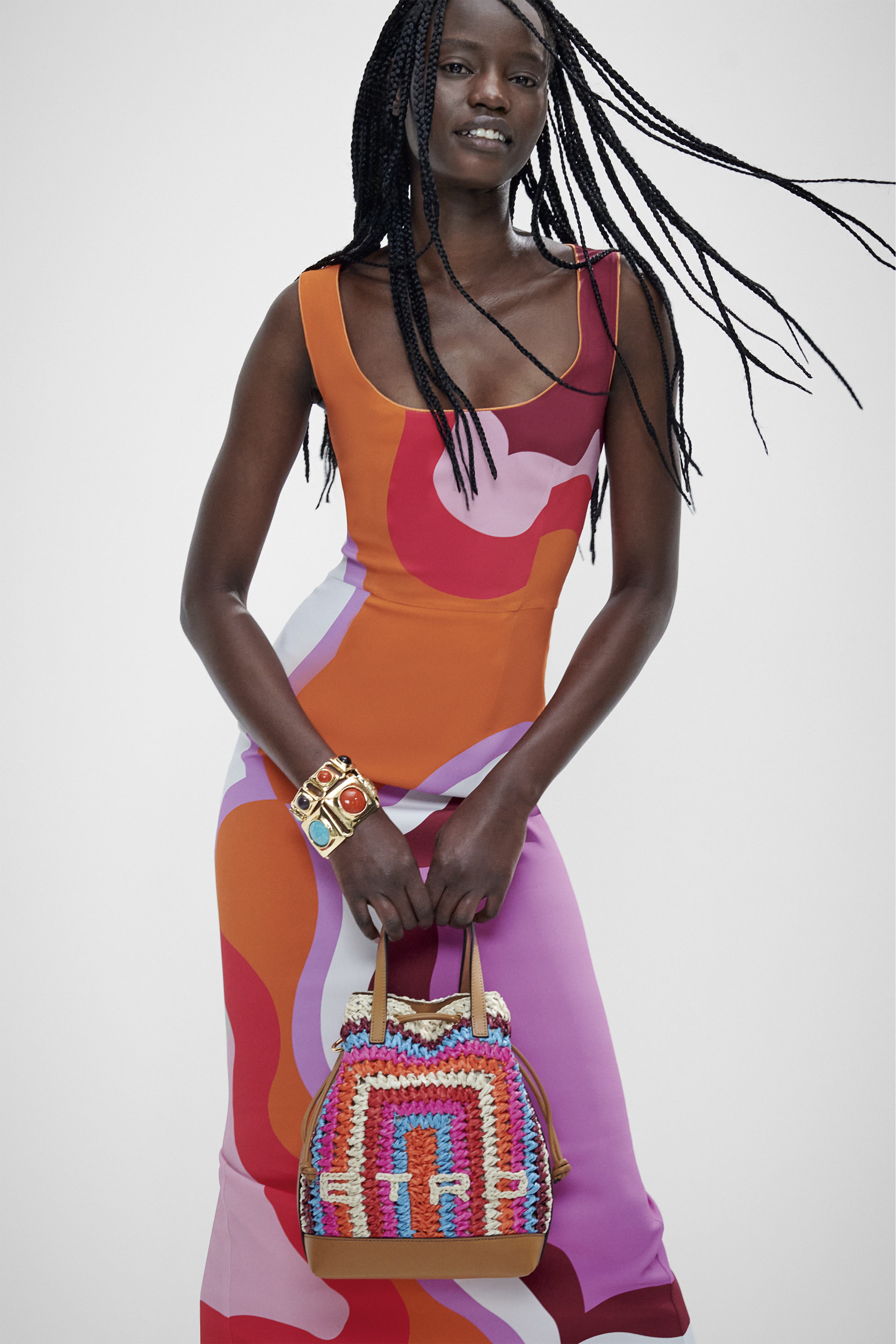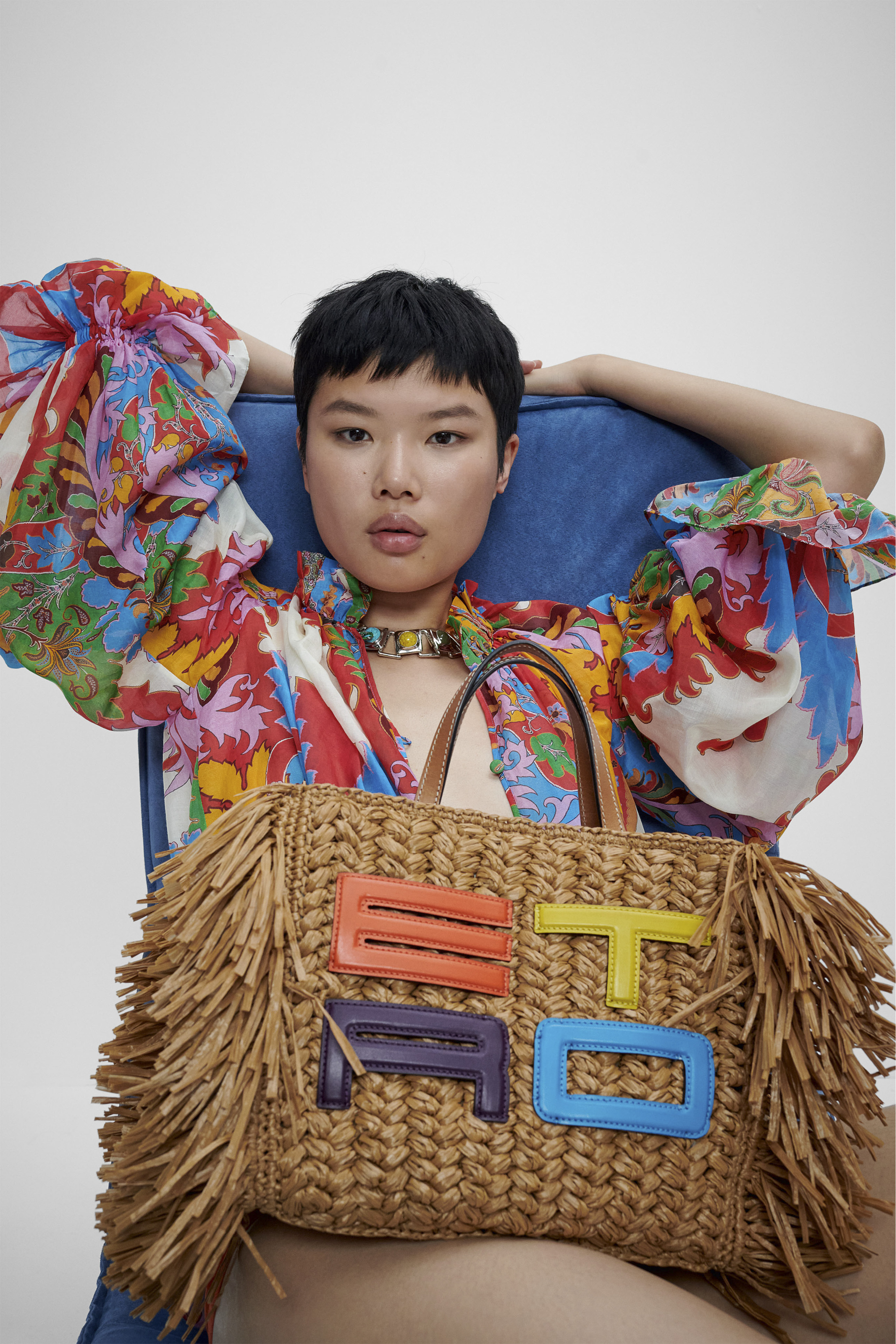 Veronica Etro‘s last word as creative director of Etro‘s womenswear division, a handover to the new creative director Marco De Vincenzo. The focus is on colour, paisleys have been enlarged and simplified. A playful bohemian atmosphere seems to tell of the warmer seasons of the year. Among the most used colours are pink, turquoise, fuchsia and orange. A rainbow universe with an unprecedented freshness.
