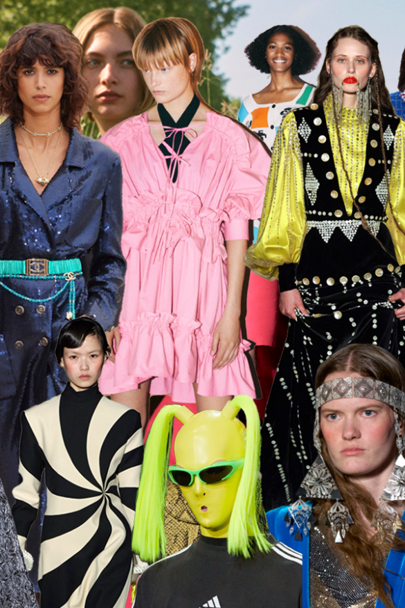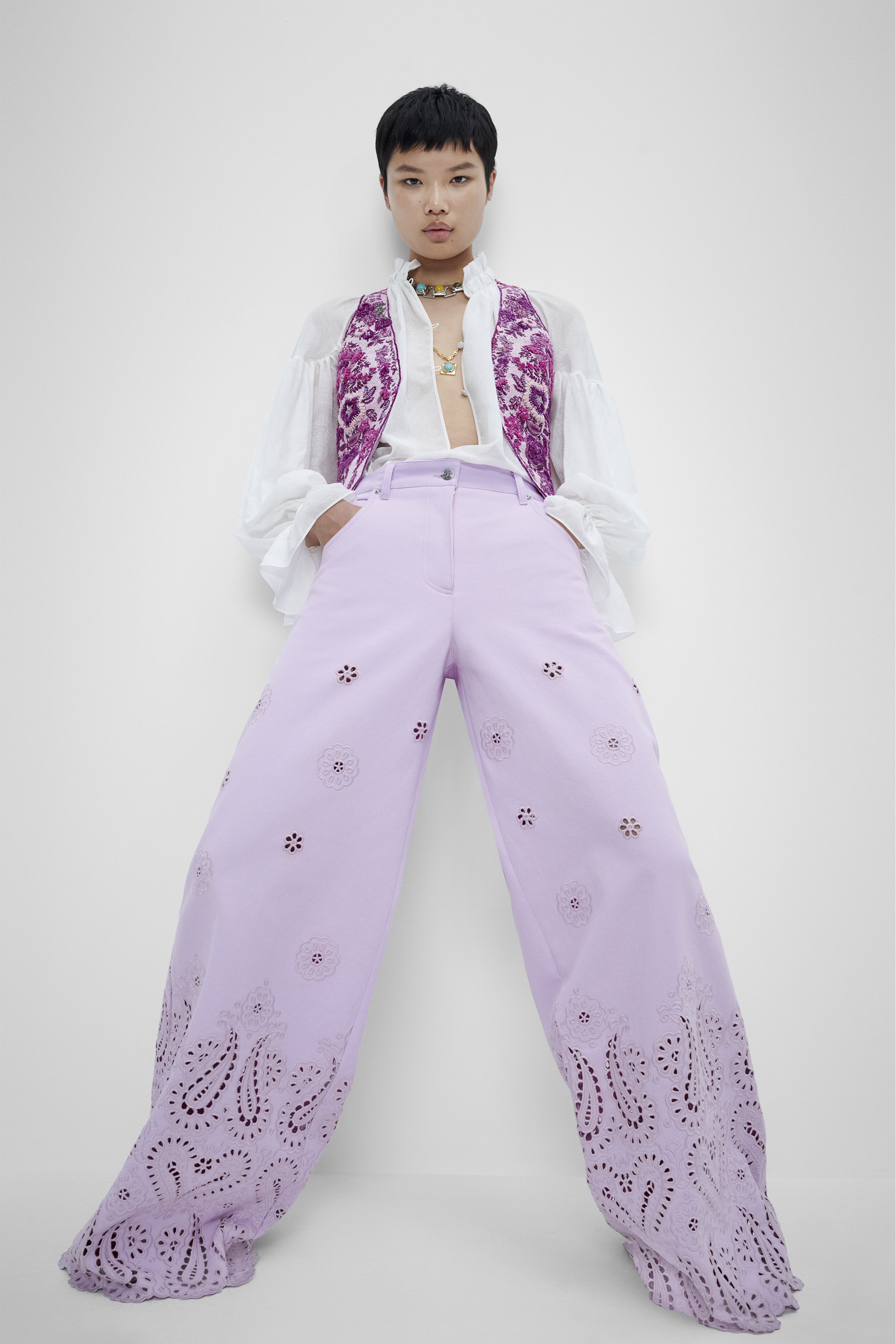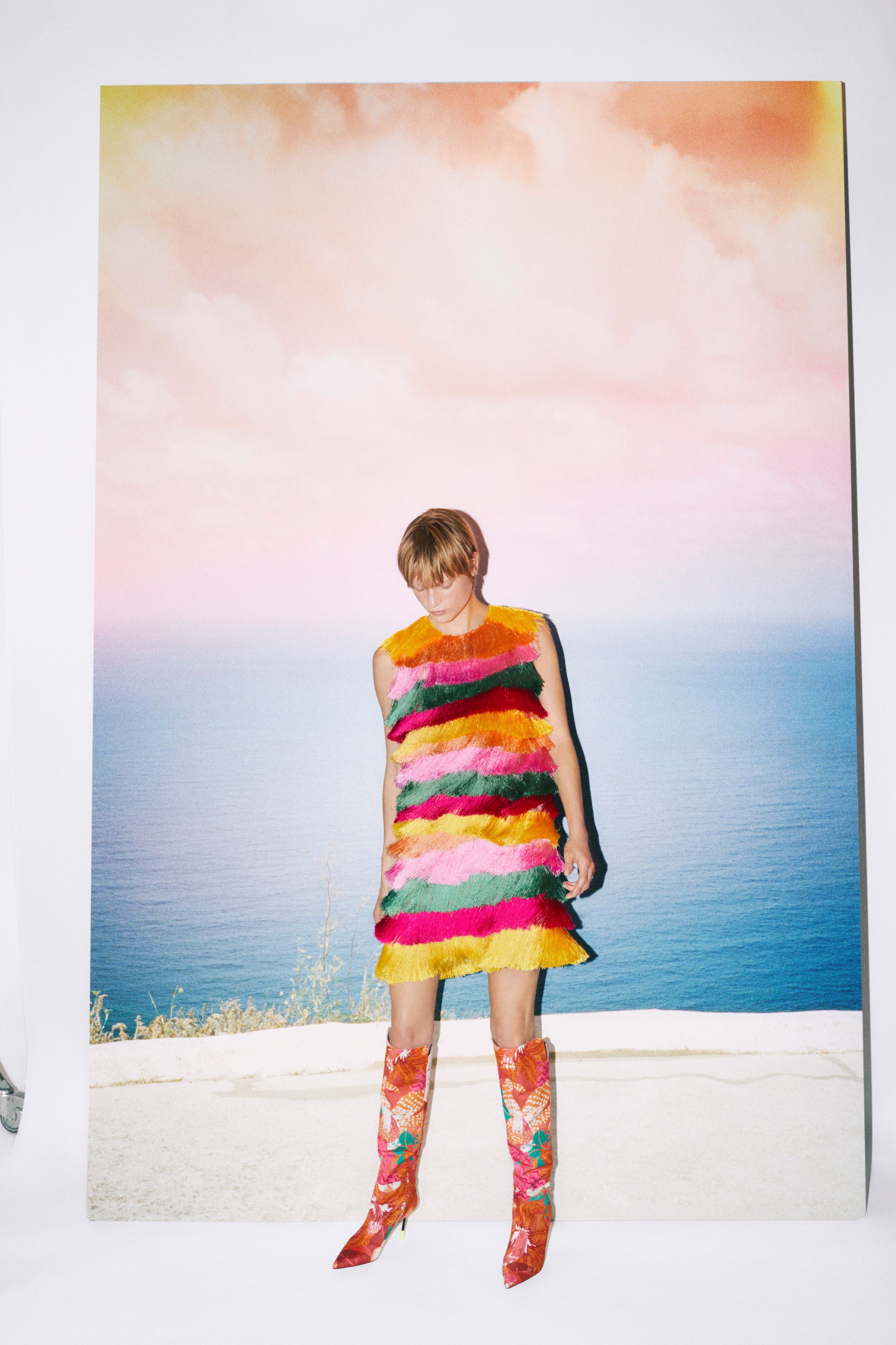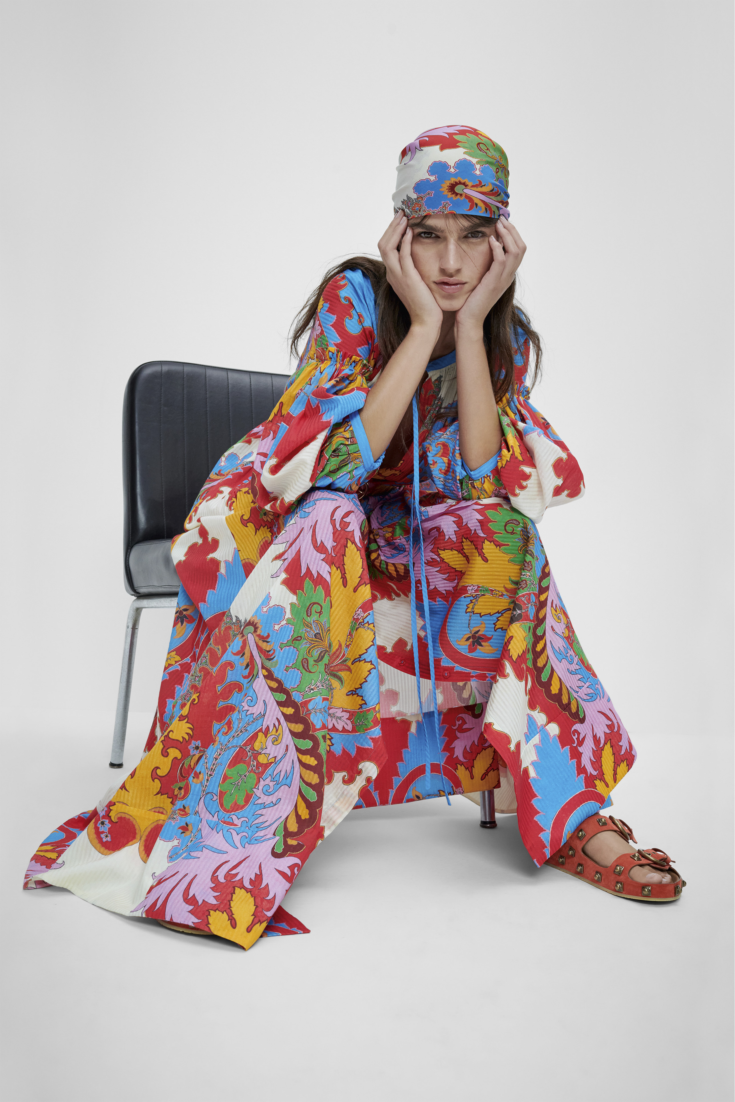 Veronica Etro‘s last word as creative director of Etro‘s womenswear division, a handover to the new creative director Marco De Vincenzo. The focus is on colour, paisleys have been enlarged and simplified. A playful bohemian atmosphere seems to tell of the warmer seasons of the year. Among the most used colours are pink, turquoise, fuchsia and orange. A rainbow universe with an unprecedented freshness.
