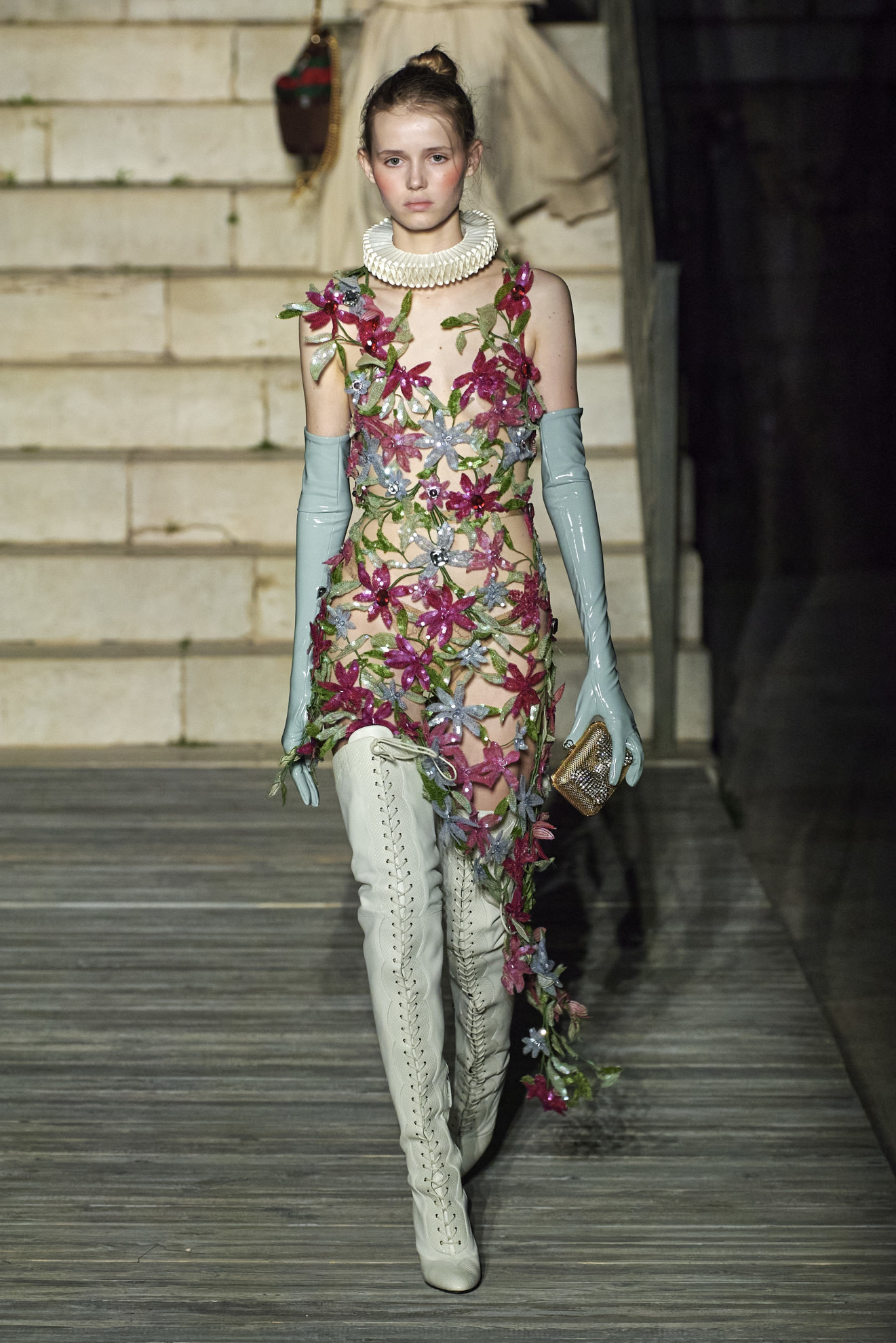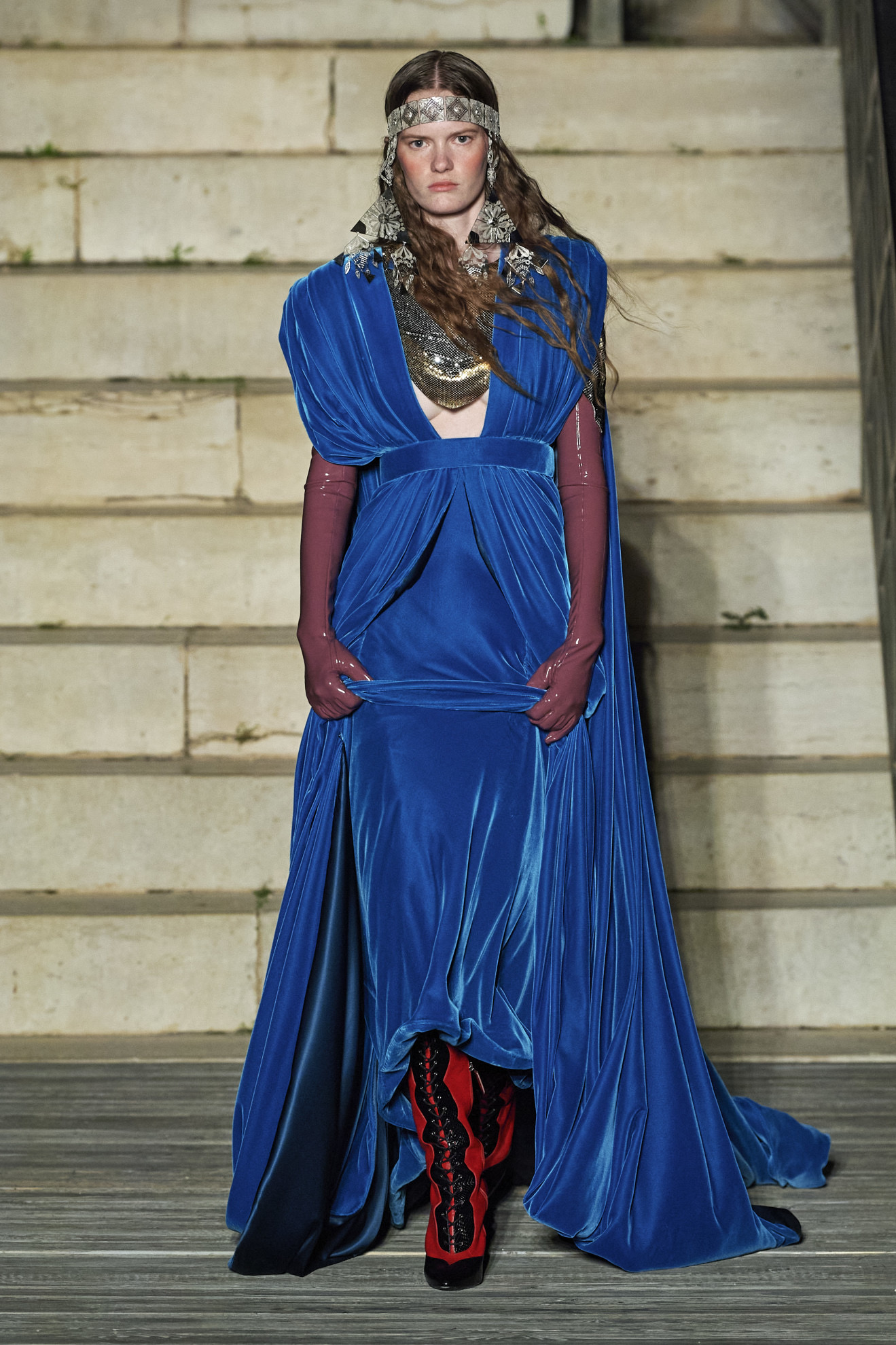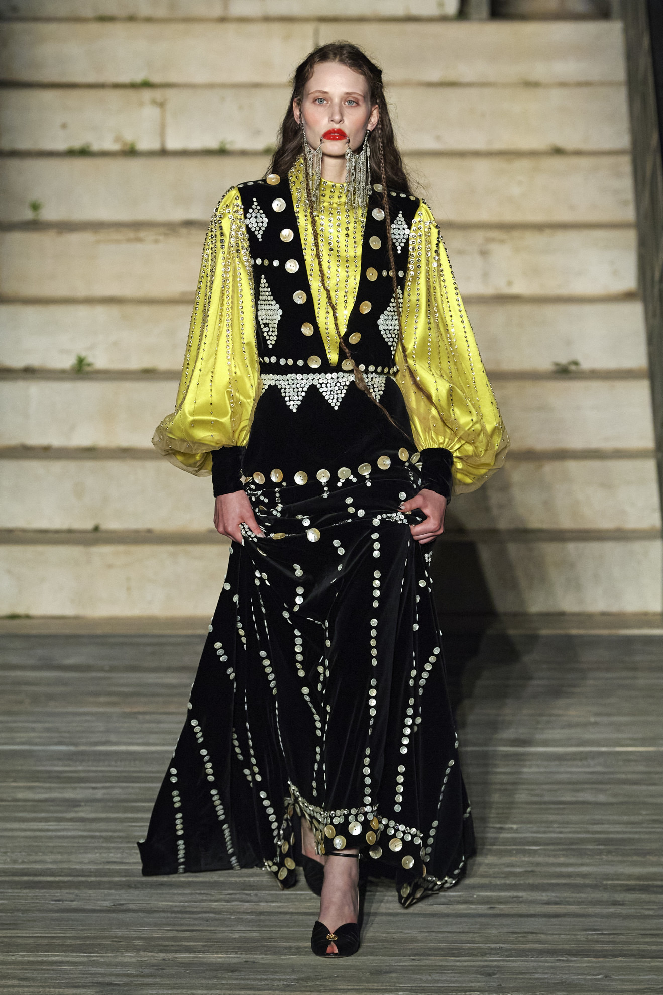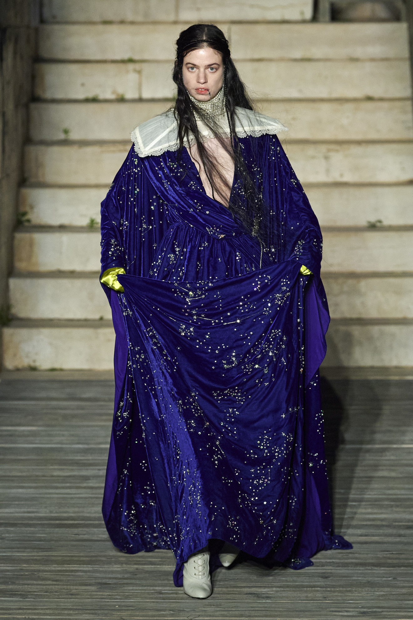 Alessandro Michele, creative director of Gucci, literally transported us into a magical surreal universe with his Cosmogenie show at Castel del Monte (in Apulia). From Elizabethan England to the French spirit, passing through Italian haute couture and Hollywood. A crazy show that ended with a dress that took us back to the constellations, embroidered with crystals on midnight blue velvet. His touch on the archive was also important, especially in the accessories, reinvented in a modern and up-to-date key. Between progress and tradition, once again Michele’s work never ceases to amaze us.