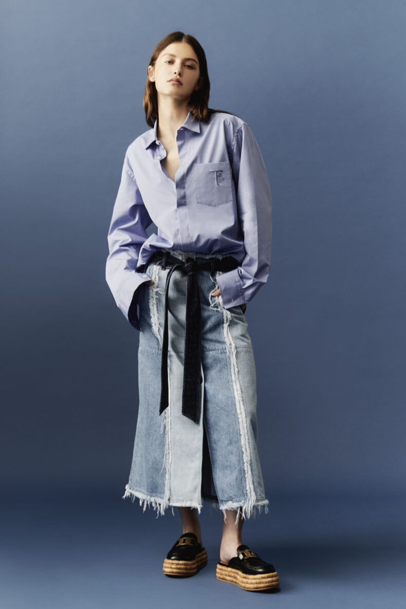 Tod’s 2023 resort collection relies on the idea of craftsmanship combined with the concept of creativity. Walter Chiapponi for Tod’s has designed a collection of interesting textures and silhouettes. Knitwear plays a key role as always, and the role of denim is also significant. A monochrome experience made up of oversize garments and accessories perfectly in line with the story, able to meld perfectly with each look.