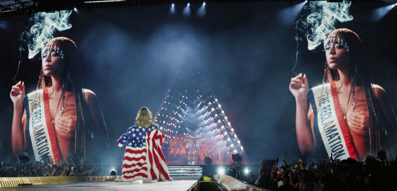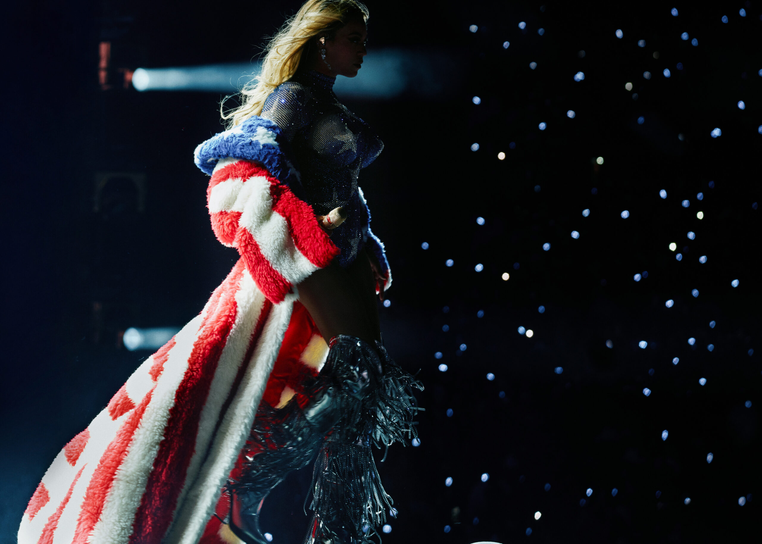 The style behind the spectacle is no accident. With Shiona Turini, Ty Hunter, and Karen Langley leading the way, Beyoncé’s wardrobe for this tour is pure narrative couture — a collection of statement looks that say something about her, about America, and about the power of women.