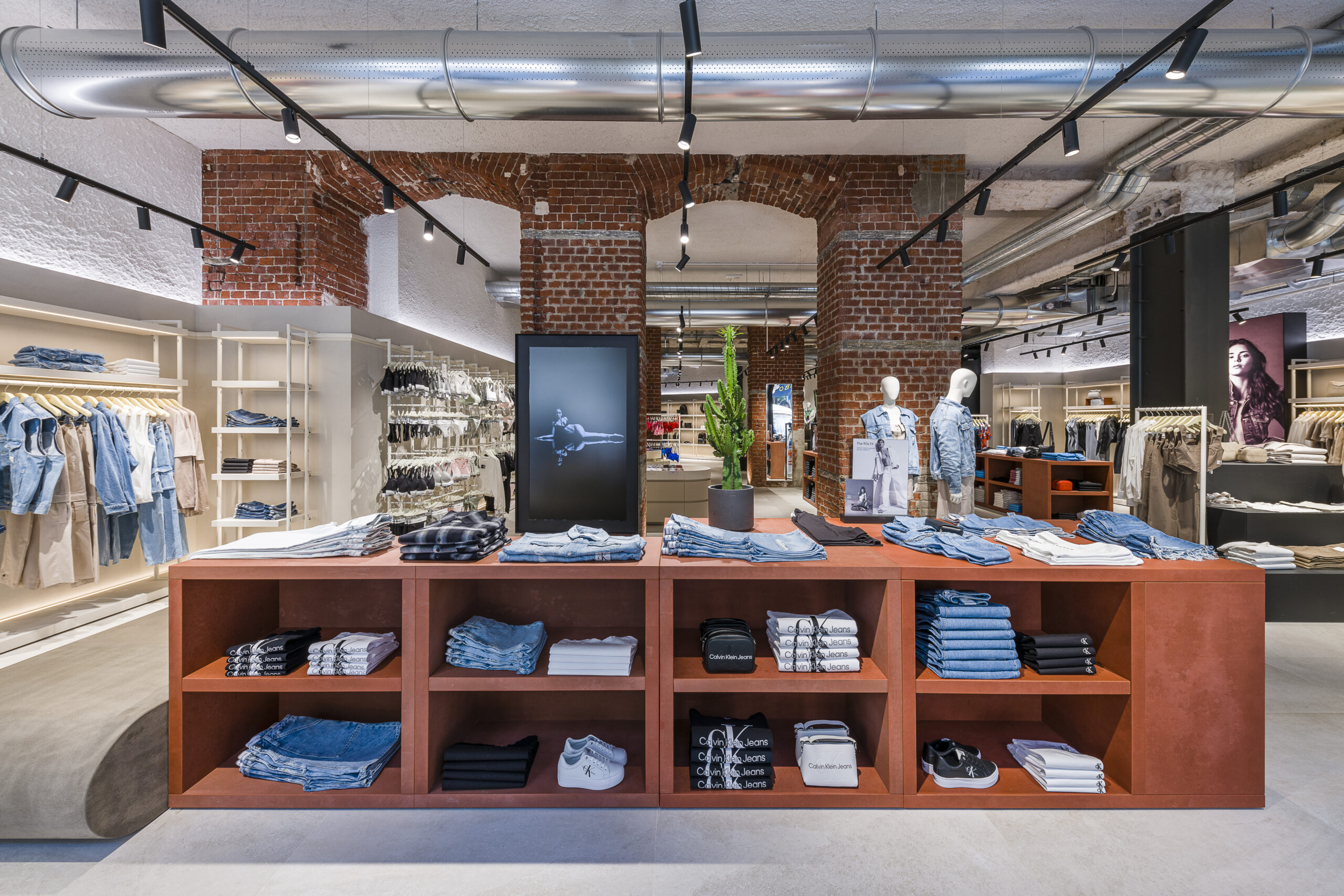 The flagship now represents the largest Calvin Klein Jeans store in Milan and features an engaging new store concept that exalts minimalism at its most expressive. The design is centered around a sculptural staircase that becomes a true work of architecture. Inside, red brick arches set against steel beams welcome products in the setting of the historic property that is part of an extensive redevelopment project. Calvin Klein Jeans’ Milan store displays the full range of collections, including men’s and women’s denim, underwear, footwear, accessories and swimwear. It currently houses the Spring Summer 2023 collection.