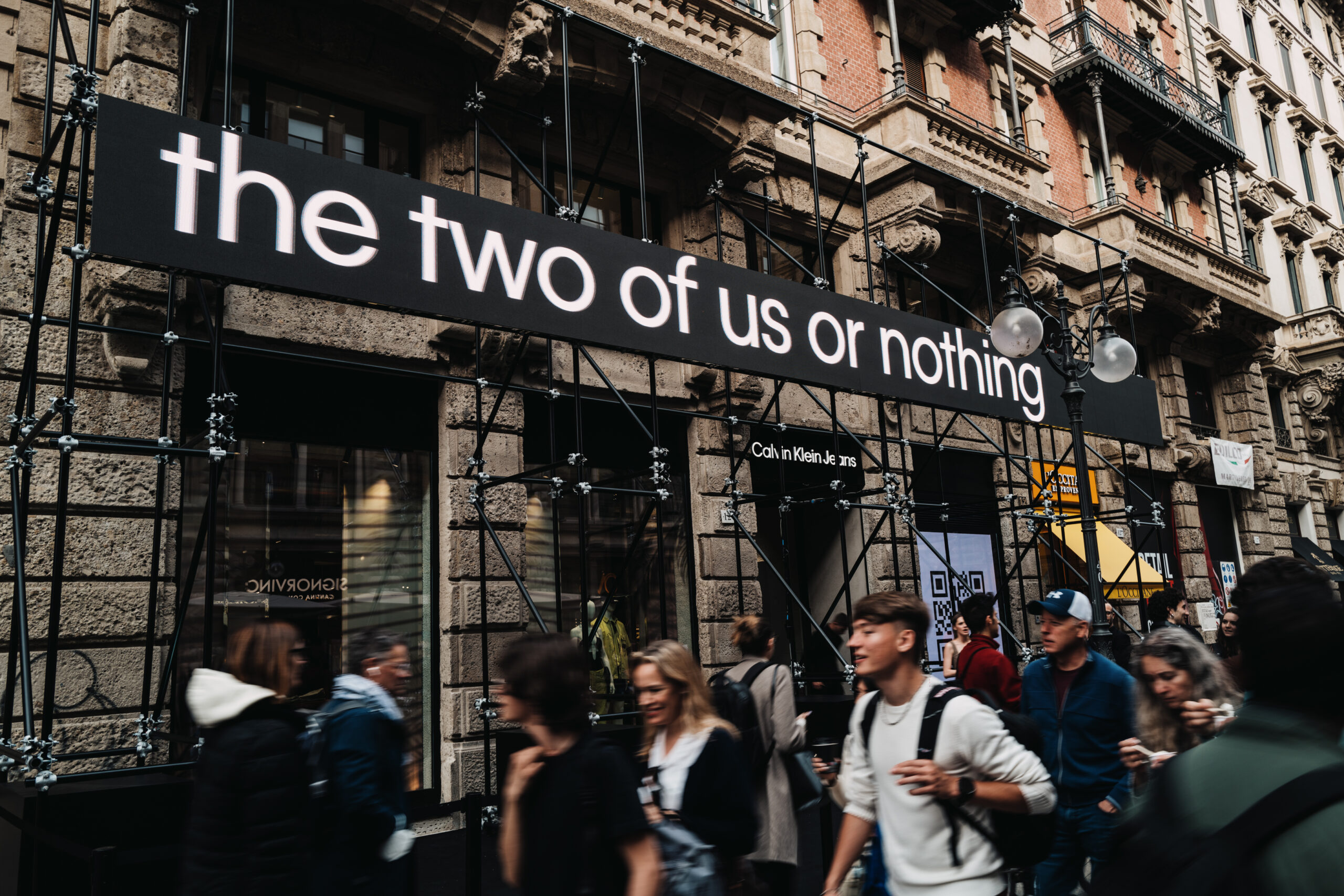 To amplify the store’s opening in the city, Calvin Klein Jeans launched a contest in partnership with NSS that allowed the community to reinterpret the “Calvins or nothing” campaign tag line by scanning QR codes scattered around the city graffiti-style or visiting the dedicated webpage. Once users submitted their personalized quote and photo, they were able to share their creation on their social channels. Ten winners will receive a total Calvin Klein Jeans look and a personalized bottle of CK One.