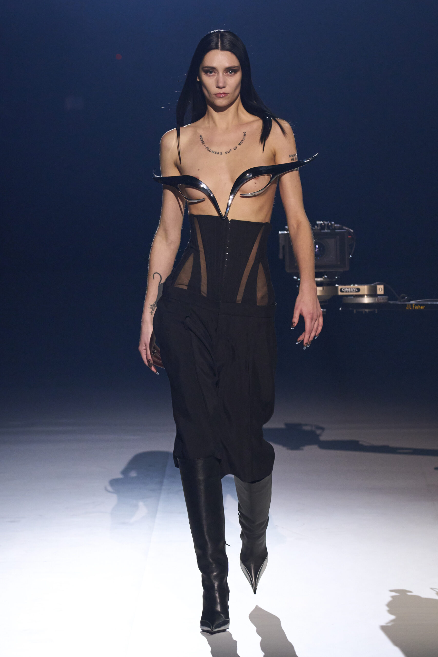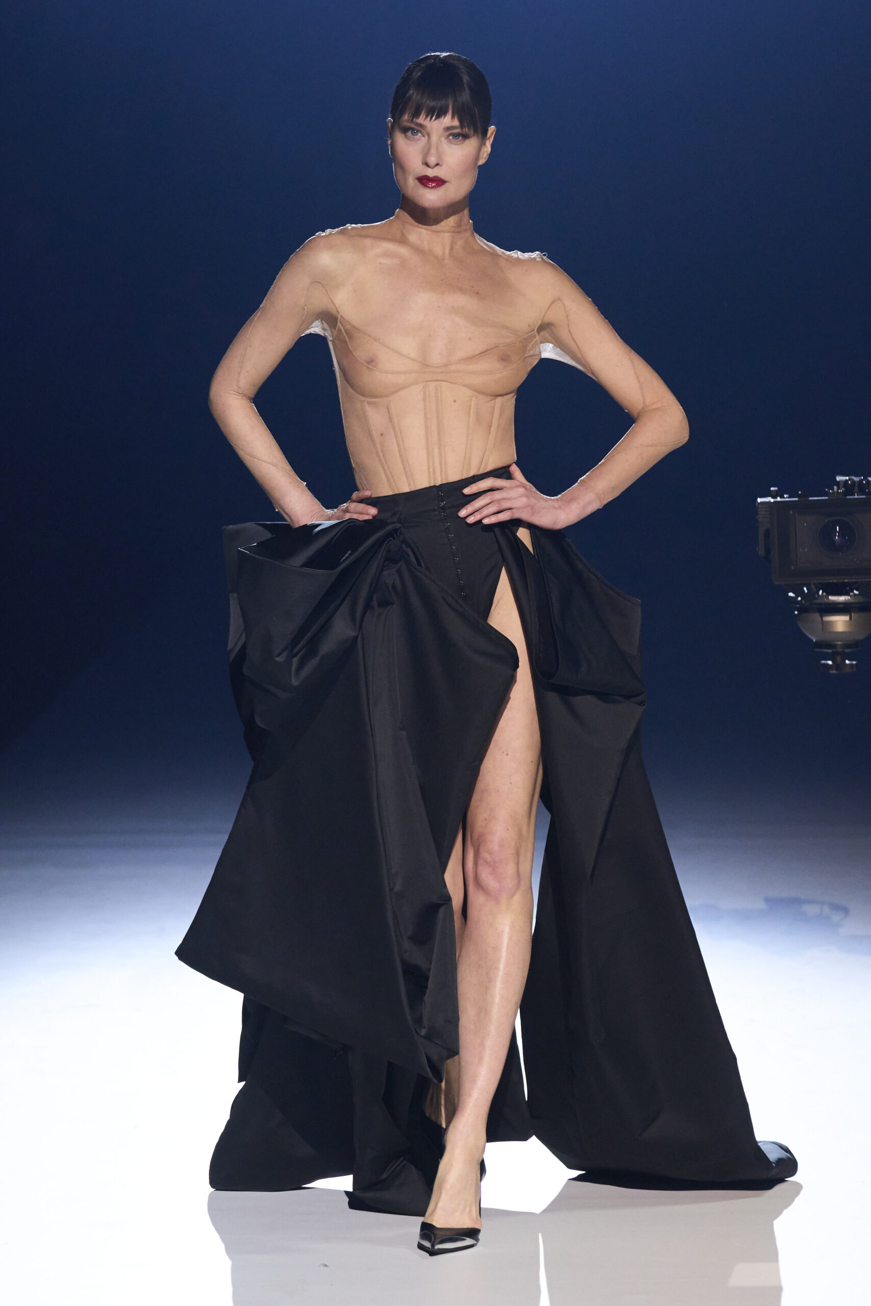 This collection is a tale of very interesting imagery, very different bodies and the heritage of the historic fashion house. Be warned though, as much as Cadwallader is able to emphasise a kind of extravagance and inclusiveness, his vision is nothing like that of founding father Thierry. In the 1980s, it was not so easy, especially to be moder. i and break. But perhaps it doesn’t matter, the Mugler universe still proves to be sexy, daring, outrageous in some respects and decidedly fetish.