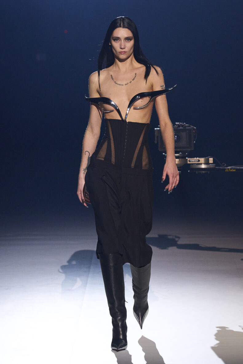 SOME LOOKS FROM MUGLER‘S AUTUMN WINTER 2023/2024 COLLECTION, DESIGNED BY CREATIVE DIRECTOR CASEY CADWALLANDER