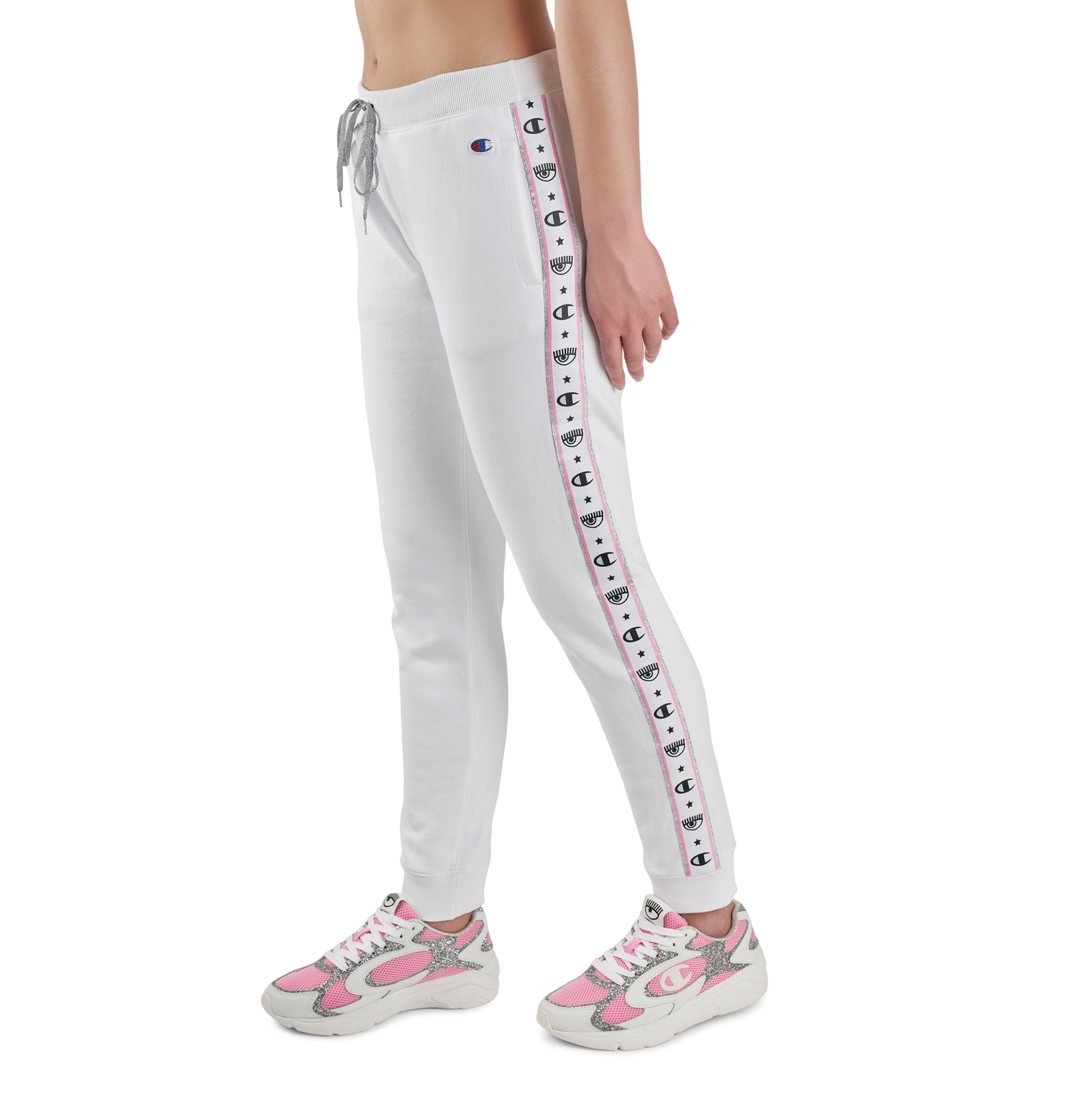 This is demonstrated in particular by the oversized sweatshirts and the acetate trousers, which recall the textures of the 90s ski suits, have become the quintessence of coolness within reach of comfort. Champion is in fact historically linked to the iconic Reverse Weave sweatshirt, which is made gritty here by a combination of soft and irresistible colours; however, there is also the total pink or black version, super cool for a fluid and unconventional wardrobe. Within the collection, not only sugar-coloured garments but also sweatshirts, joggers, shorts and crop tops in cotton available in different shades that range from grey to blue. Champion X Chiara Ferragni Collection is not only perfect for a daily look in step with trends, which as we now know have made sportswear a diktat but also presents details associated with gym wear as shown by the sports bra and leggings. To symbolize the fusion of the two forces, the iconic “eye” logo of Chiara Ferragni and the symbol of Champion come together, alternating in an unusual and extraordinary way on the trims of each garment. Obviously there is no shortage of sneakers, which give a new silhouette to the classic running shoe, filling it with unmistakable glitter and pastel shades.
