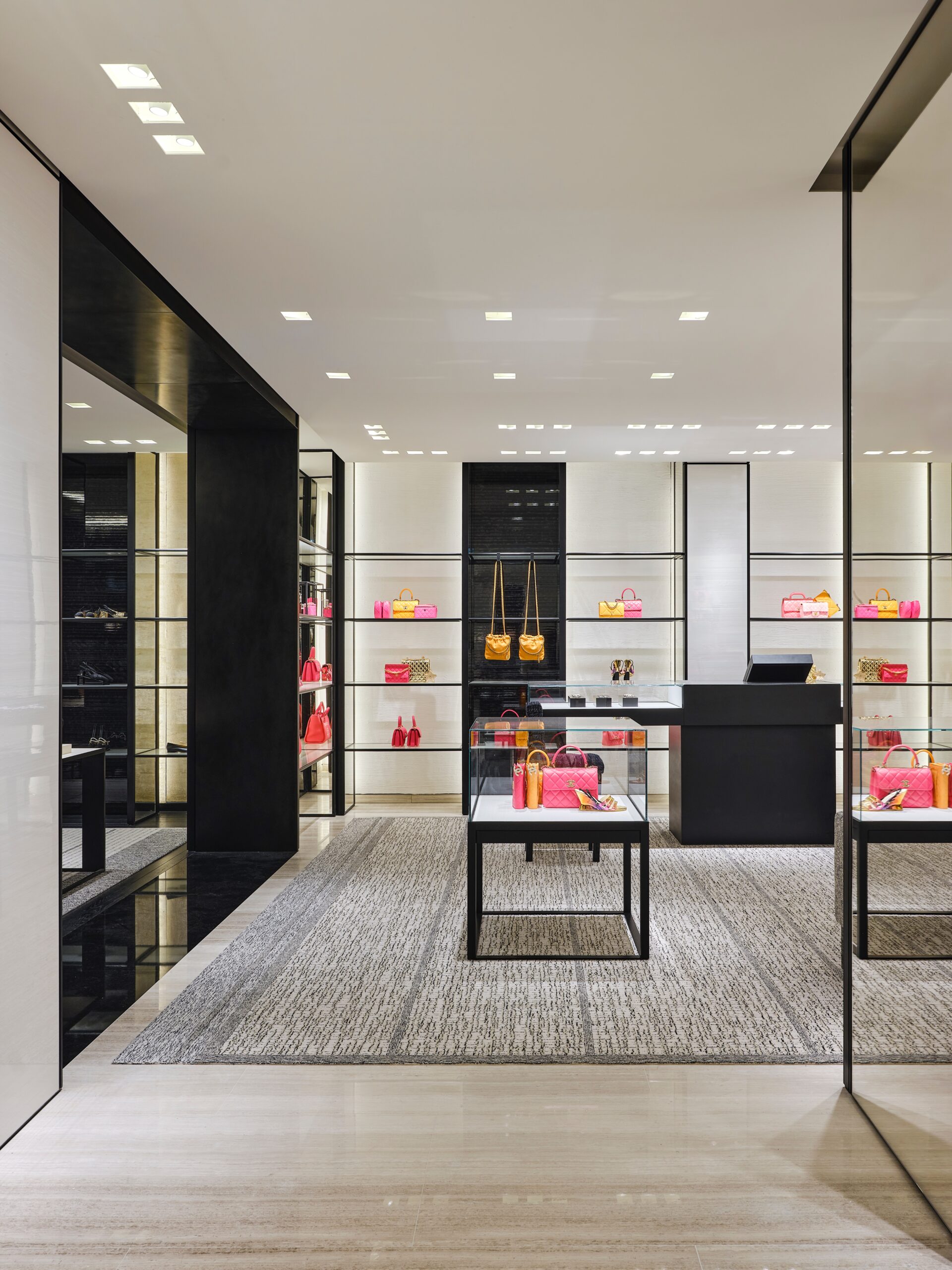 Then, among the spaces dedicated to Watches and Jewelry, visitors can admire the famous J12, Première, Boy·Friend, and Code Coco collections, with elegant glass and metal consoles illuminated by Goossens chandeliers that create an Art Deco atmosphere. The boutique becomes the exceptional stage to present the 55.55 necklace, a masterpiece from the “N°5” High Jewelry collection with a custom-cut diamond of 55.55 carats. The upper two floors, dedicated to accessories and the latest Ready-to-Wear creations, offer a realm of style and sophistication. The refined atmosphere is enriched with pieces of design and antiques, including Zen crystal lamps, a 1970s table with fossil inlay, and Augusto Bozzi chairs. Inaugurated with the Cruise 2023/24 collection in Los Angeles, the boutique highlights Chanel’s continuous aesthetic innovation and the mastery of architect Peter Marino in telling the iconic Parisian elegance, even in Milan.
