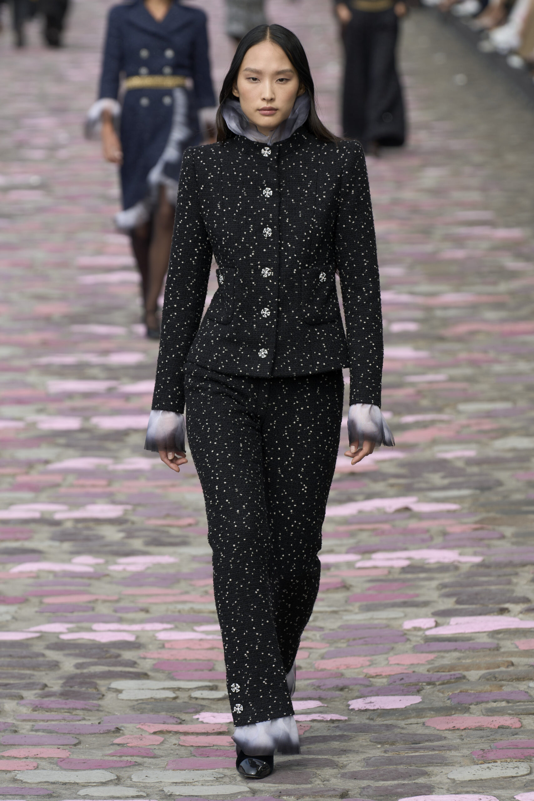 Opening the show was Caroline de Maigret, author of the best-seller ‘How to be Parisian Wherever You Are’, who wore a long coat in the iconic double-breasted navy tweed.