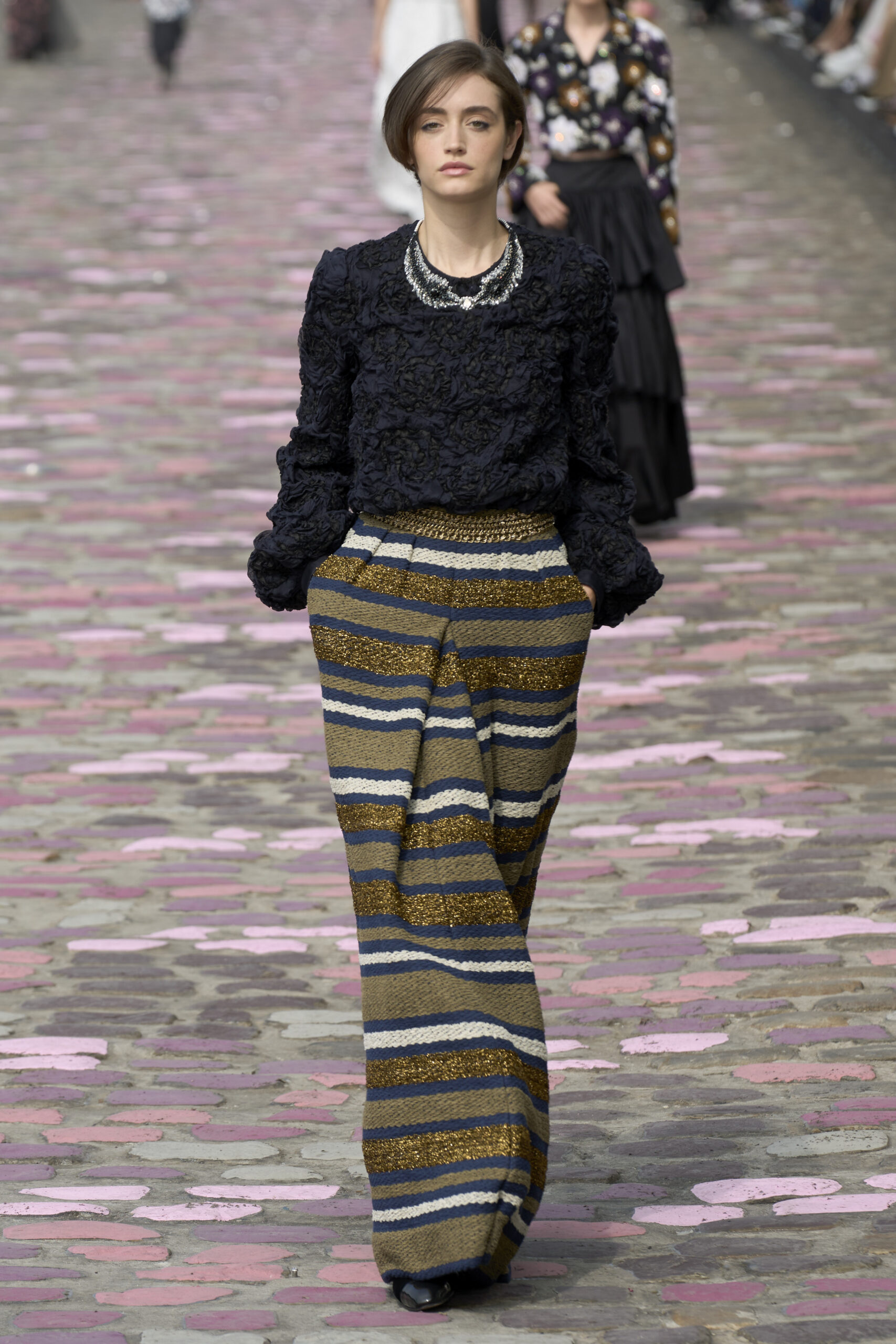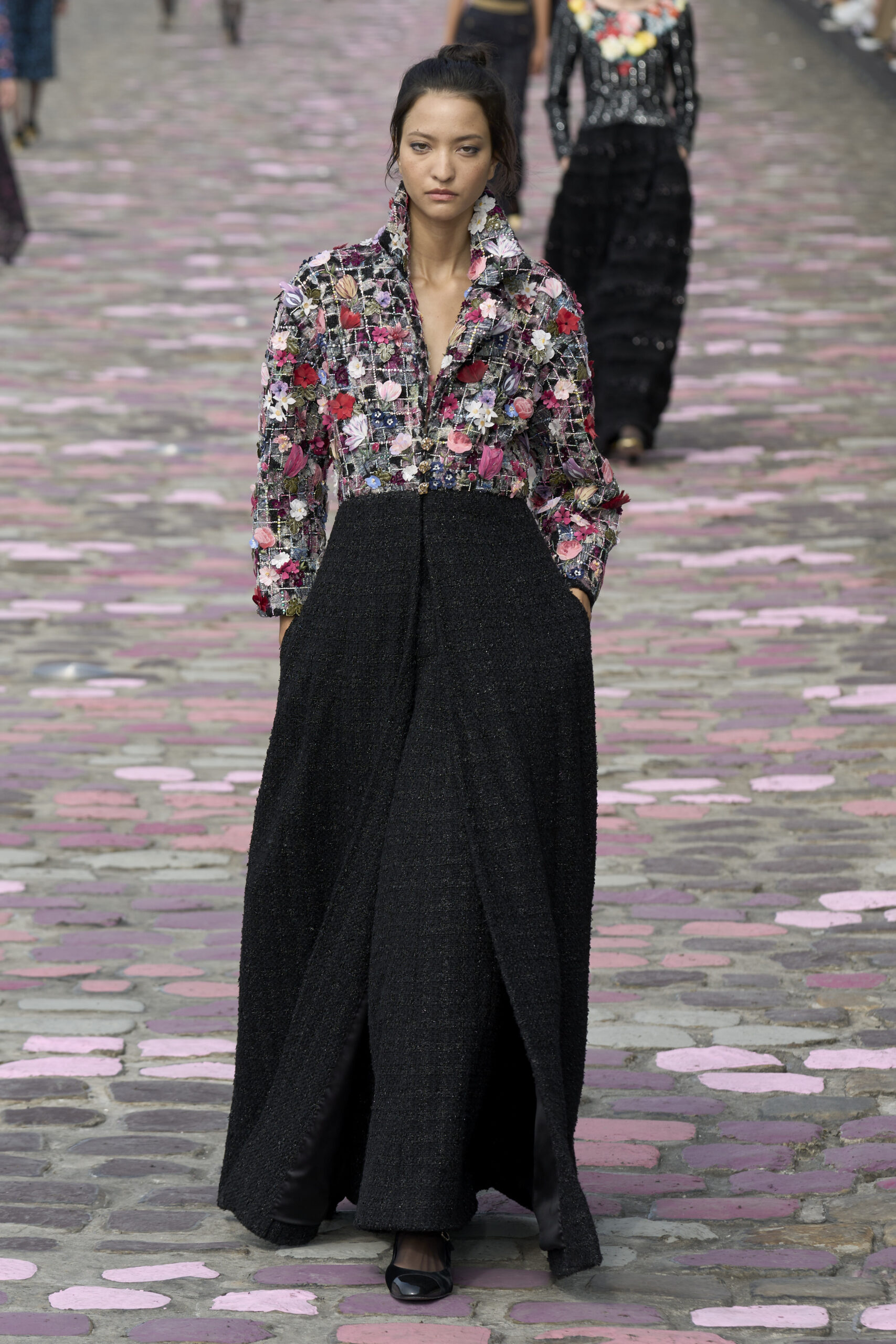 The models walked the catwalk in looks that expressed an everyday, not quite haute couture, but characterised by Mary Janes, daytime blouses and emblematic pieces of the historic French fashion house. Virginie Viard places great importance on narrating Chanel, immersing us in a Frenchness that is limitless, original and authentic. This collection clearly represents a refinement and style that goes beyond the typically French imagination.