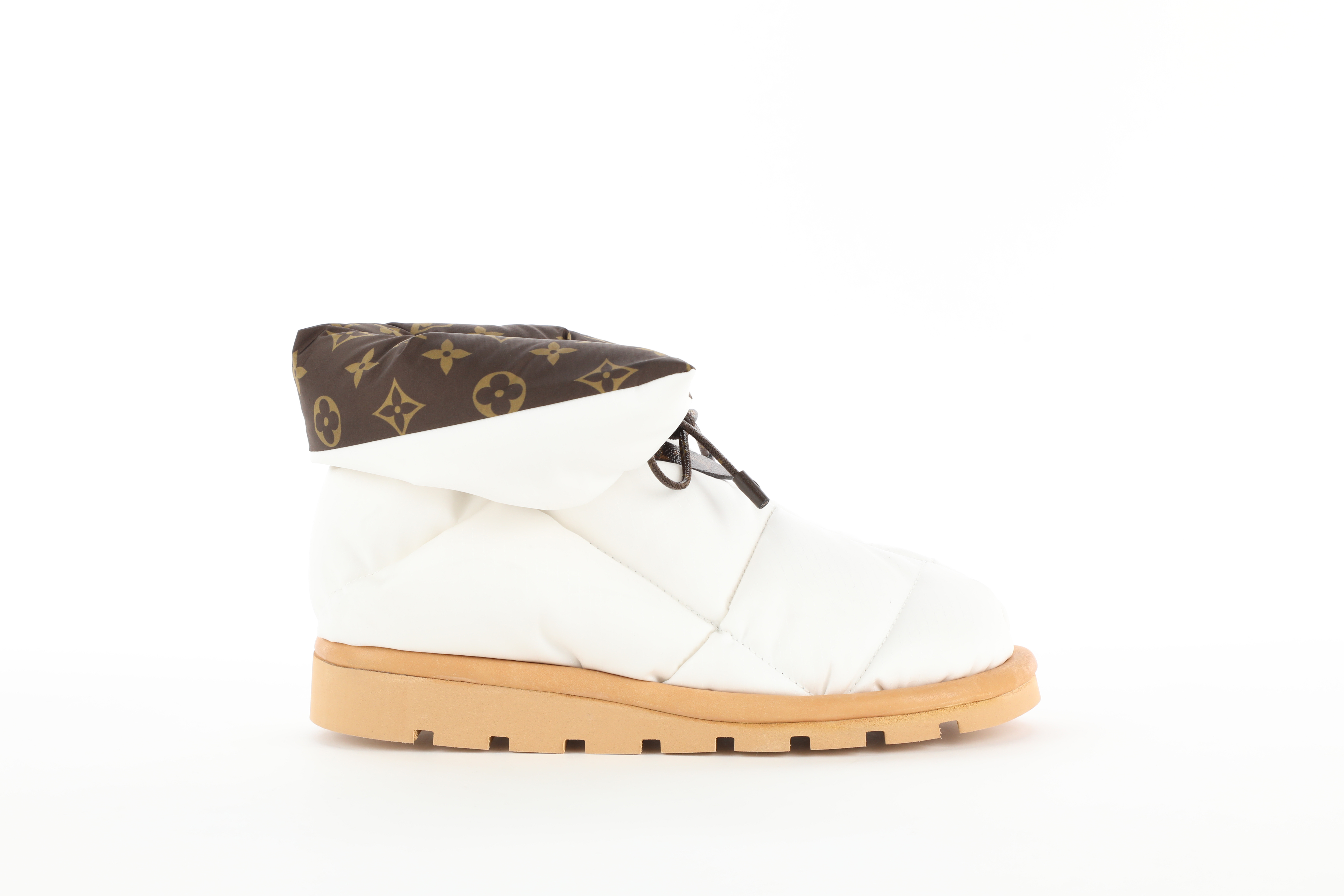 The Pillow Boots dictate an uncompromising style, which absorbs the trends of the moment while reflecting them in the aesthetic codes of the Maison: the Monogram animates the lining and the laces, while the elegant Louis Vuitton tag enhances the upper part of the boot.