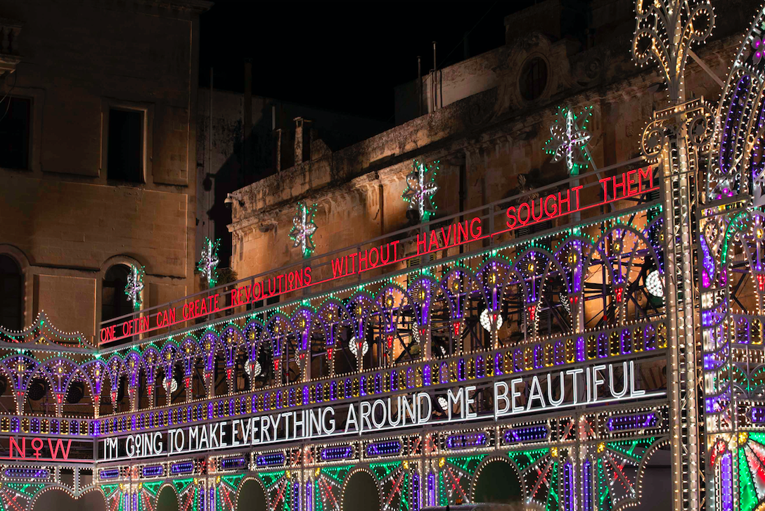 The light show was accompanied for the whole duration of the show by ritual dances, opening the parade with the sound of Pizzica and ending it on the notes of the unmistakable voice of Giuliano Sangiorgi, frontman of the Apulian Negramaro.
