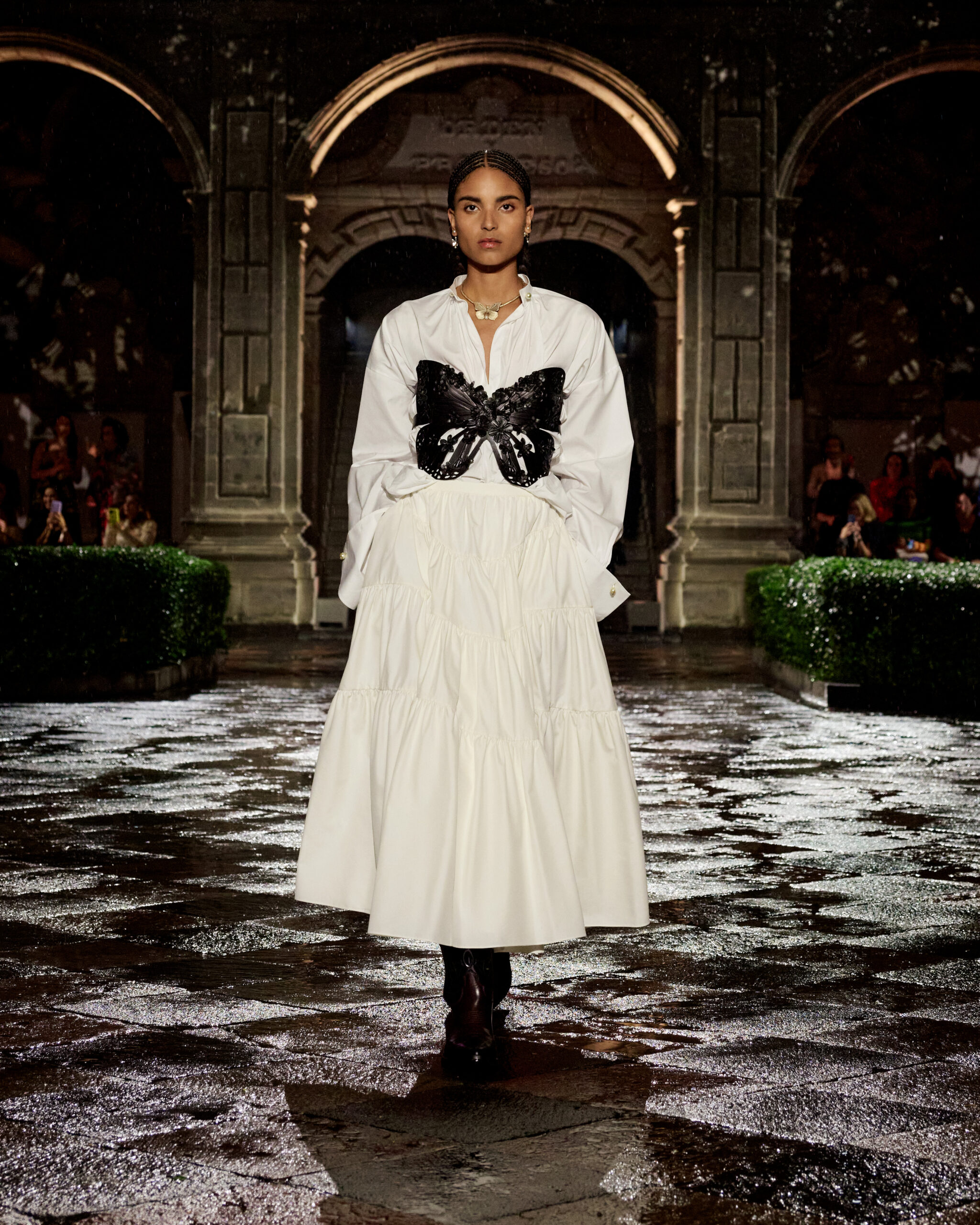The show took place at the Antiguo Colegio de San Ildefonso, a magical and symbolic place where Frida Kahlo studied and met Diego Rivera, her mentor and love of her life. The fashion show was enhanced by a performance by Mexican artist and feminist Elina Chauvet. In addition, Dior’s Cruise welcomed an impressive parterre of guests, including stars Naomi Watts, Alicia Keys, and a variety of local celebrities such as Karla Souza and Yalitza Aparicio.