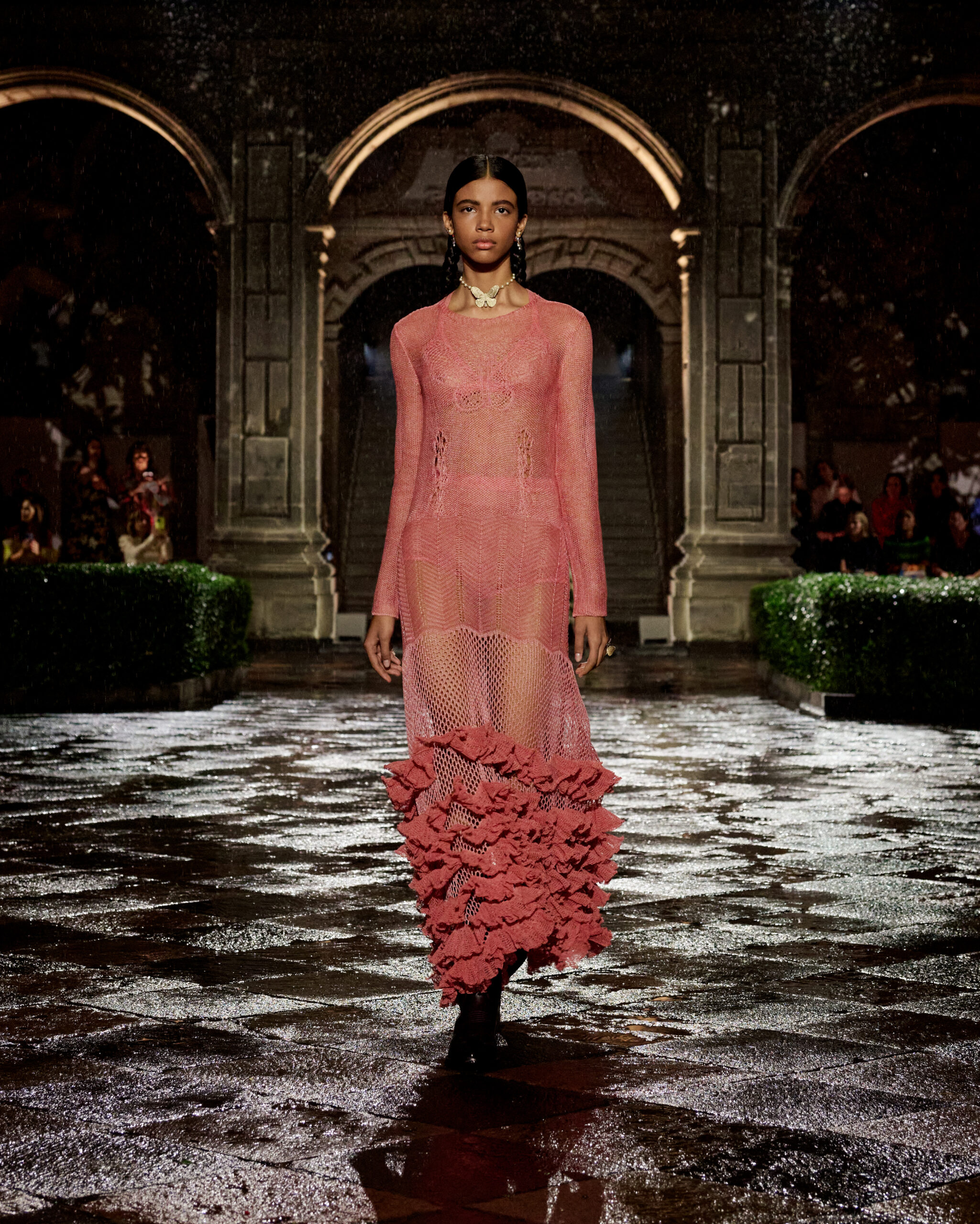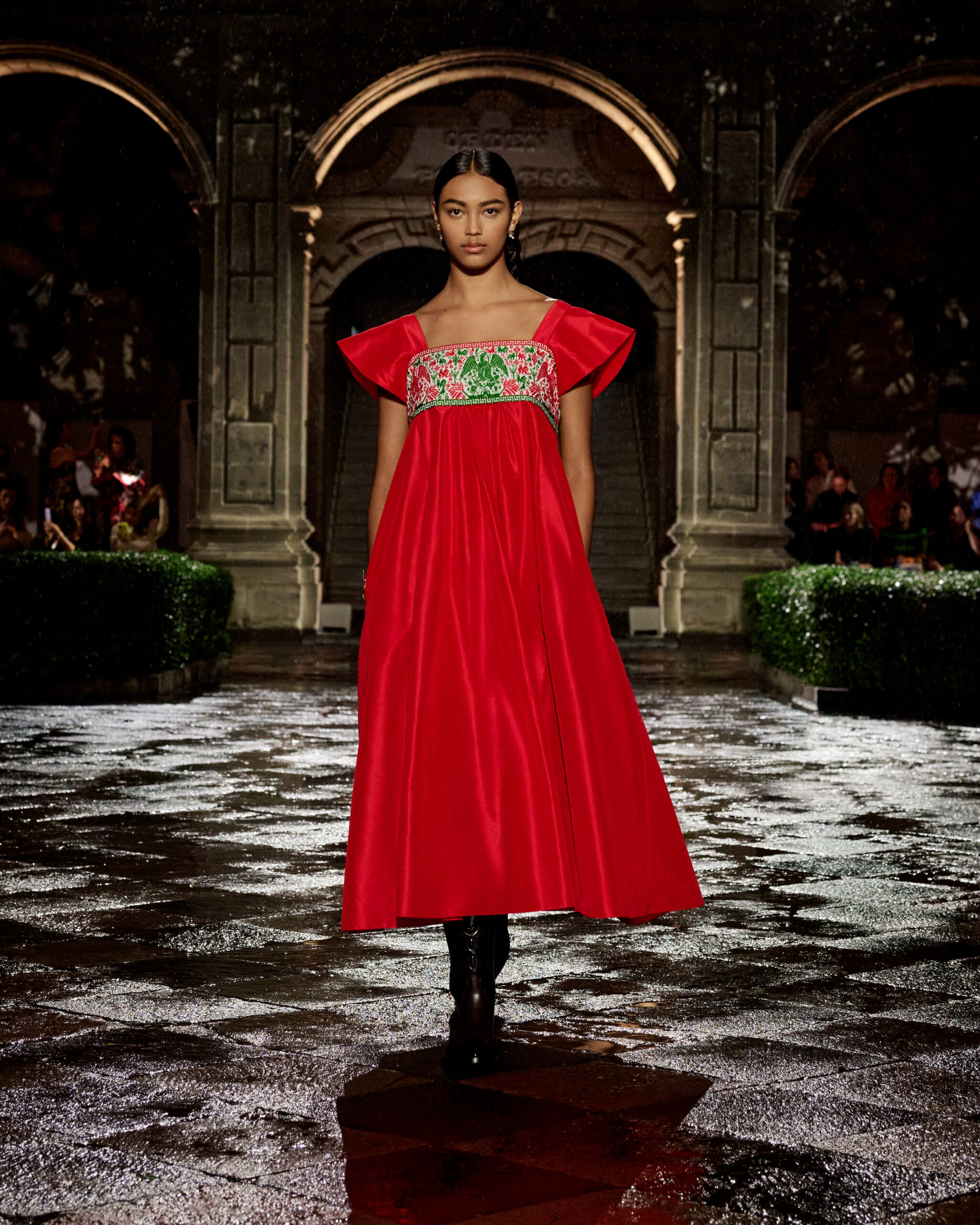In this case, Dior chose to show in Mexico City, a place that has a significant history for the fashion house. En effet, this fashion house has a rich history of relationship with this place. In the 1950s, how can we forget Monsieur Dior’s first dresses, called precisely ‘Mexico,’ ‘Acapulco,’ ‘Soirée à Mexico,’ and ‘Mexique’?