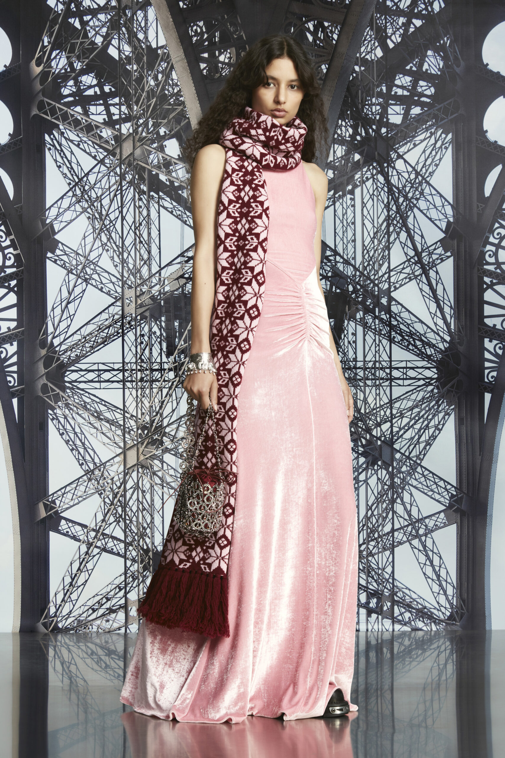The new Resort collection of this renowned fashion Maison, immortalized with the iconic Eiffel Tower in Paris as a backdrop, blends elements from the 1930s with a touch of contemporary modernity, using geometries, shapes, and textures emblematic of the historical brand. Then, Rabanne’s lookbook moves to the Trocadero setting, where Dossena chooses to narrate an unprecedented luxury made of fringes, bold fabrics, and vintage details, decidedly edgy.