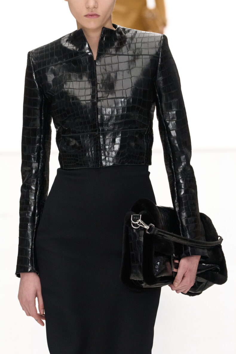 Then, the distinctive DNA of the Italian fashion house intertwined with intensely worked embroideries, giving life to a series of bags that embody craftsmanship excellence. Among the most extraordinary creations stands out – as already mentioned – a Mini Baguette with 18-carat white gold finishes and embellished with a diamond-studded buckle, with the addition of a platinum leaf applied to the precious crocodile leather.